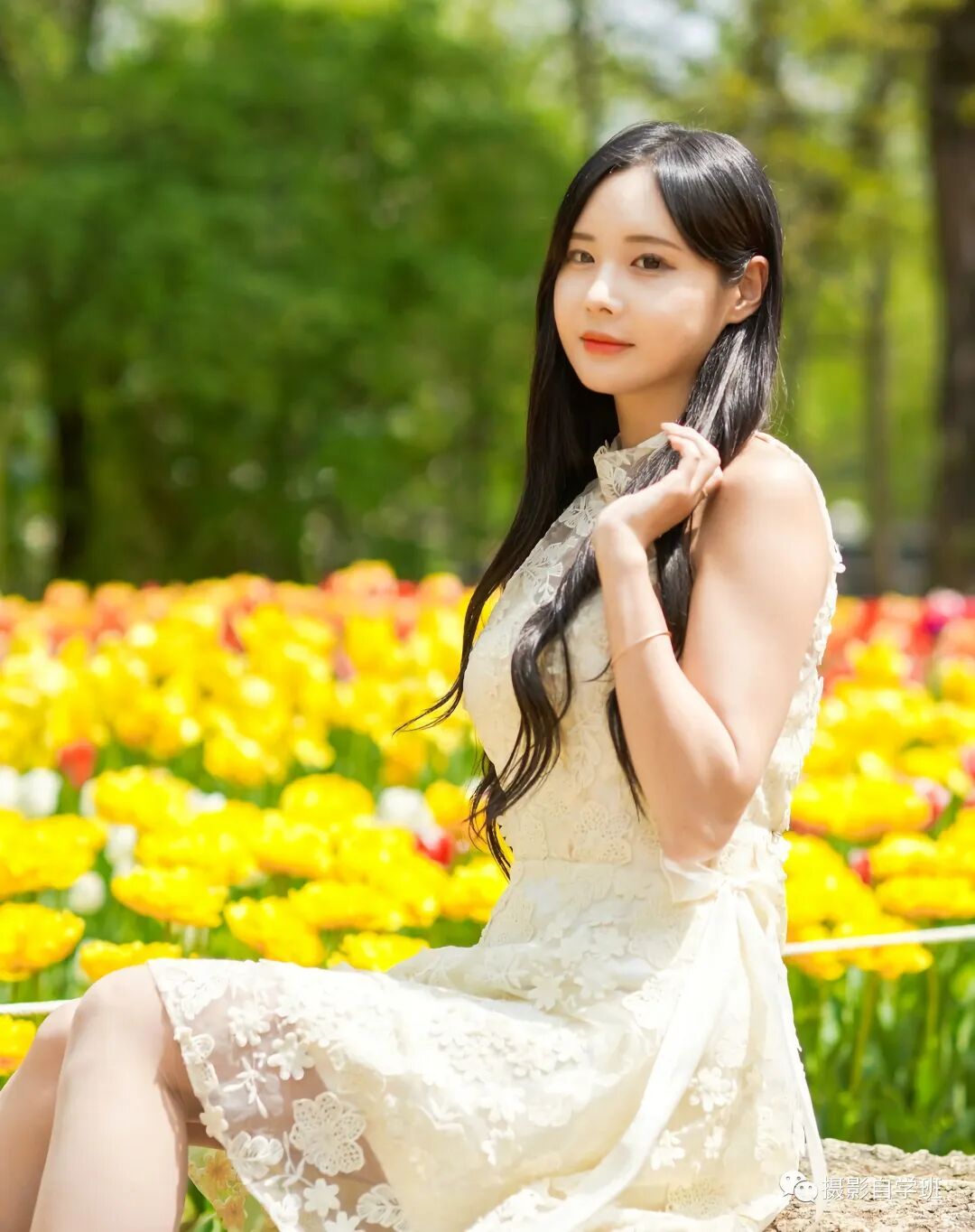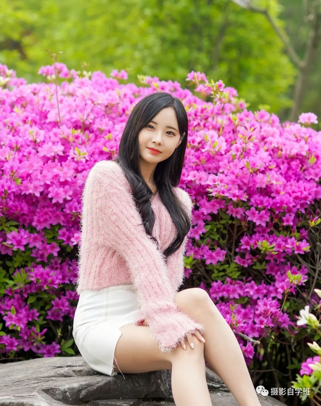 在室外拍照片,背景相当重要,背景漂亮,整张照片,就会好看很多,如果背景很杂乱,或者背景的景物,并不优美,那照片想要好看,难度会很大,不过不要担心,这里我全都介绍。先介绍背景,好看的时候应该怎么拍,看图2与图3,背景都是鲜艳的花朵,那被拍摄的人,就可以坐在花朵旁。摄影师要注意,拍摄侧面照片,会比正面照片好看很多,因为侧面更显轮廓,也更显出优美的体型,像图2与图3,都是拍摄侧面的照片。