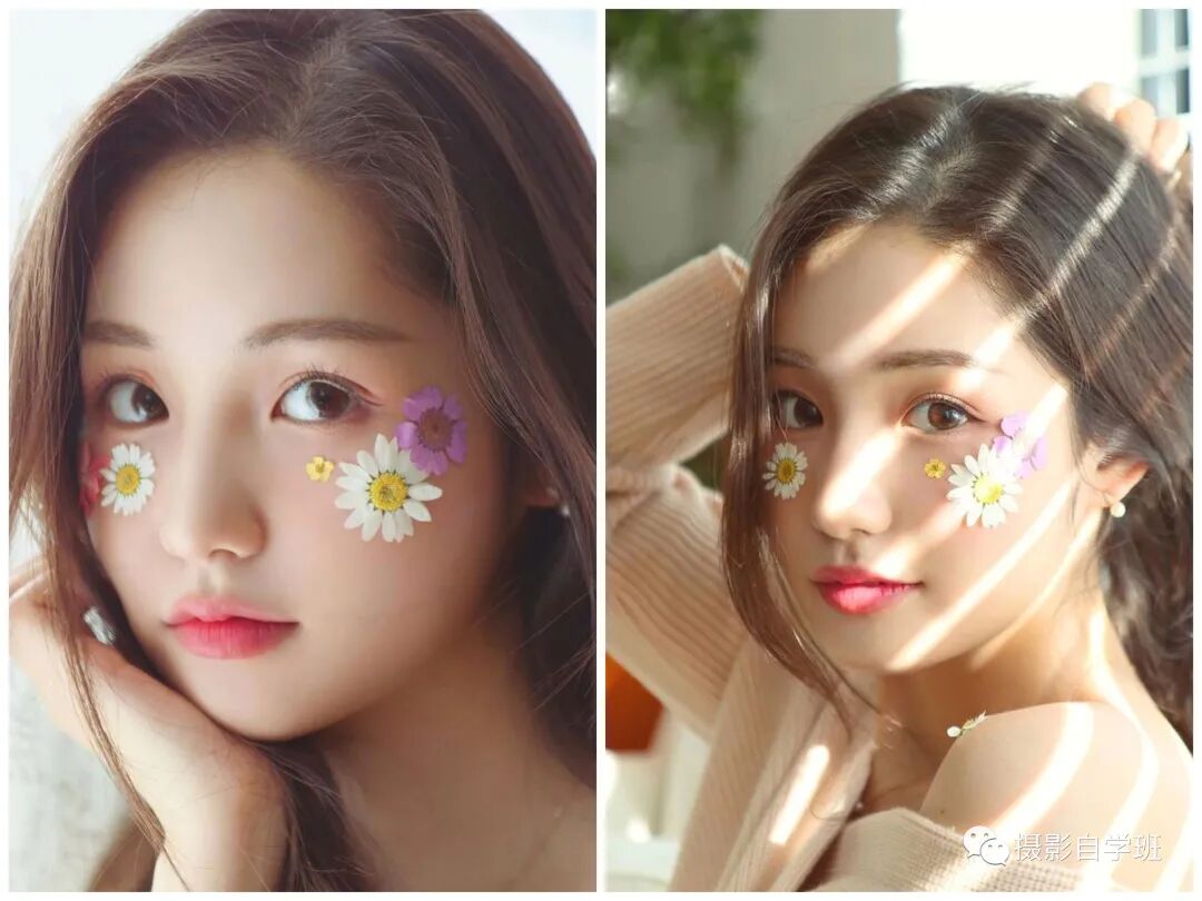 很多朋友在拍照片的时候,手不知道应该放在哪里。可以像上图左侧这样,用手扶住下巴,但是注意不要用力,不要让手把下巴挤变形。或者像上图右侧这样,回头看镜头,同时另外一只手抚摸自己的头发。