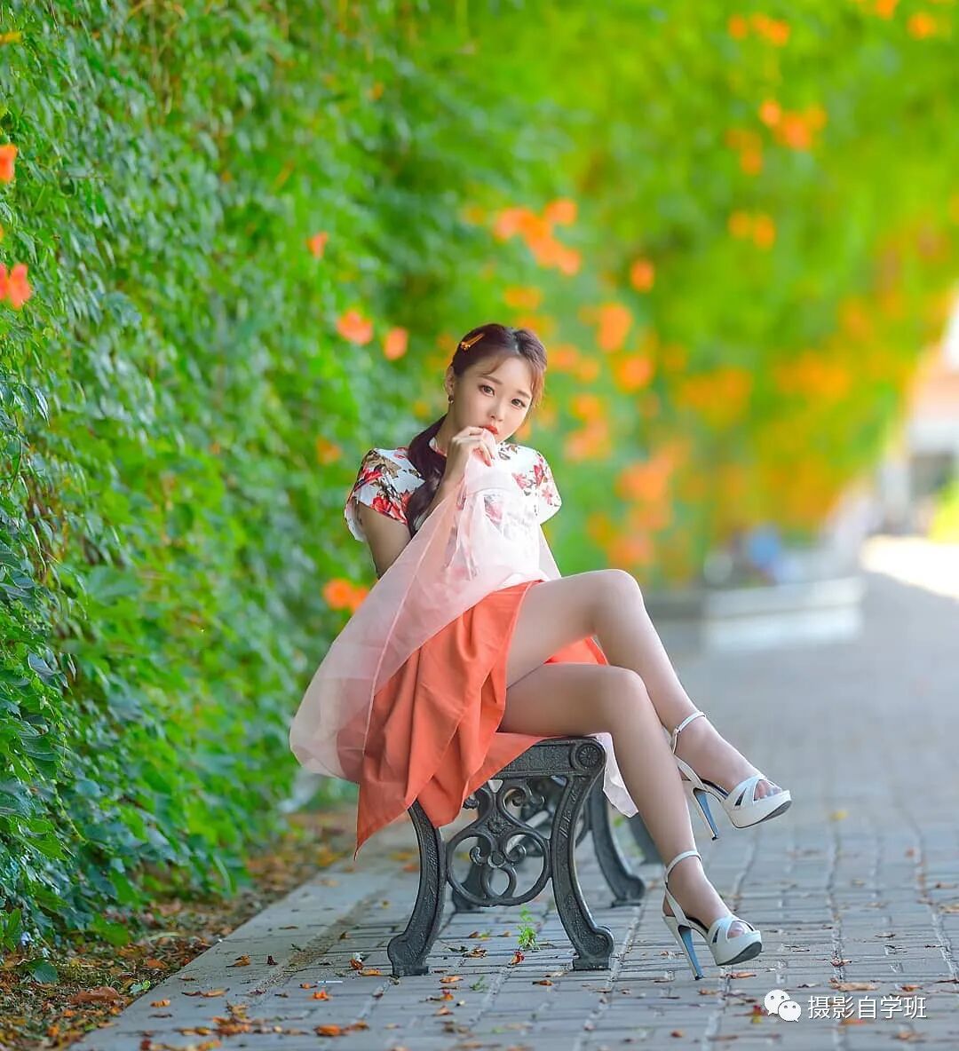 如果站着拍,首先,要站直,把腿并拢,将身体的重心放在一条腿上。另一条腿可以微微弯曲,让膝盖微微向内靠拢,这样可以拉长腿部线条,显得更加修长。但是,如果坐着拍,怎么能让腿显得相对长呢?