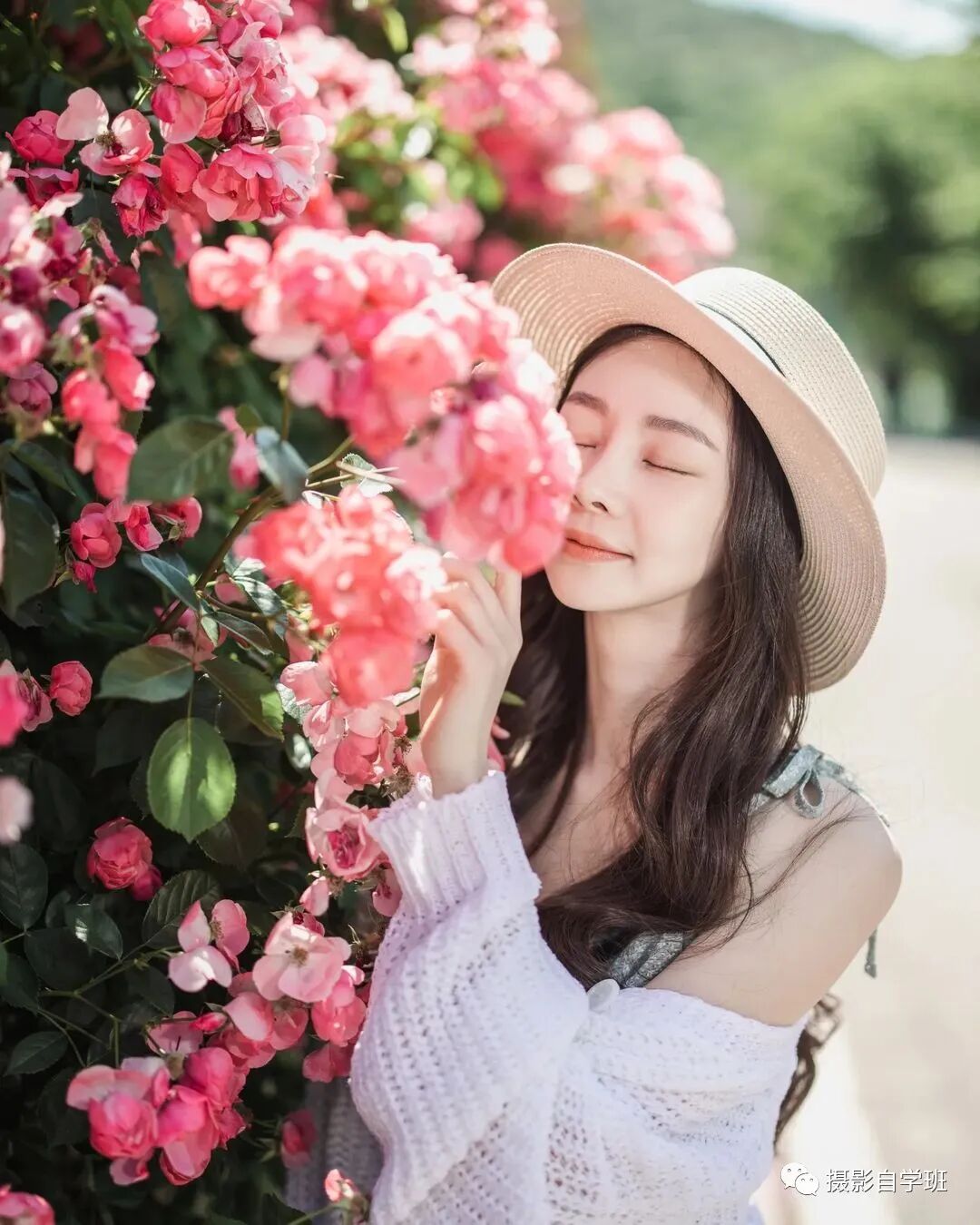 图2与图3这两张照片,哪一张更好看?明显是图3更好看,你知道为什么吗?因为图2这张照片,都能拍得出来,让人站在花墙当中,人拍的很清晰,花也很清晰,照片没有虚实对比,而图3当中,前景有一些虚化,背景有一些虚化,中间的人看起来更加清晰,从这个角度拍摄,让照片看起来更加立体,图2与图3,都是同一环境,只是改变了一个拍摄角度,就能让画面看起来更不一般,这个角度,就是从侧面拍摄。