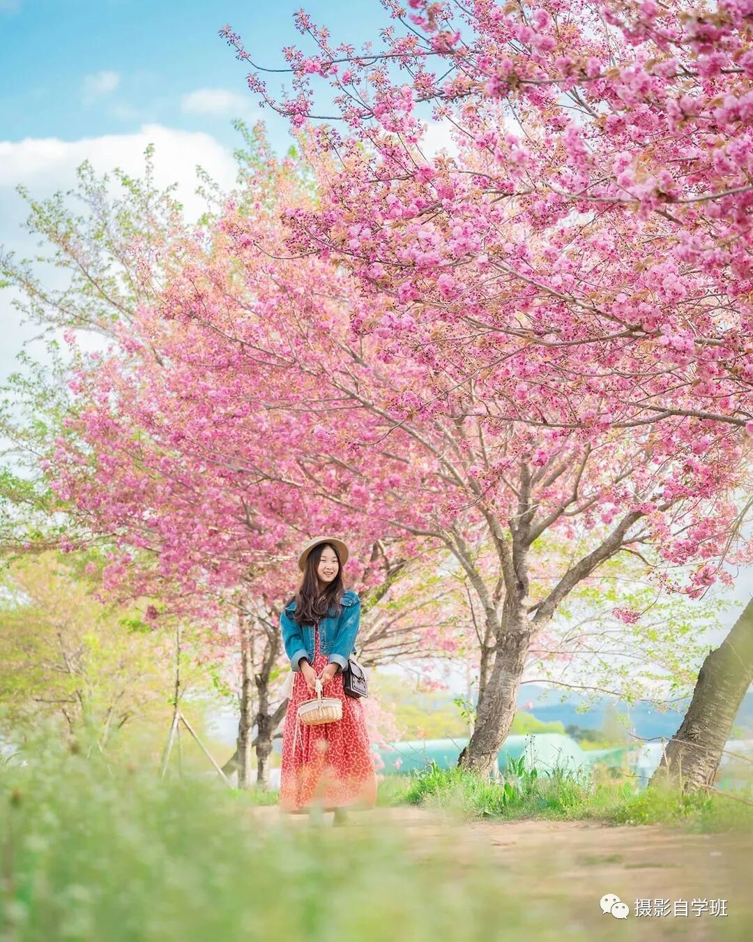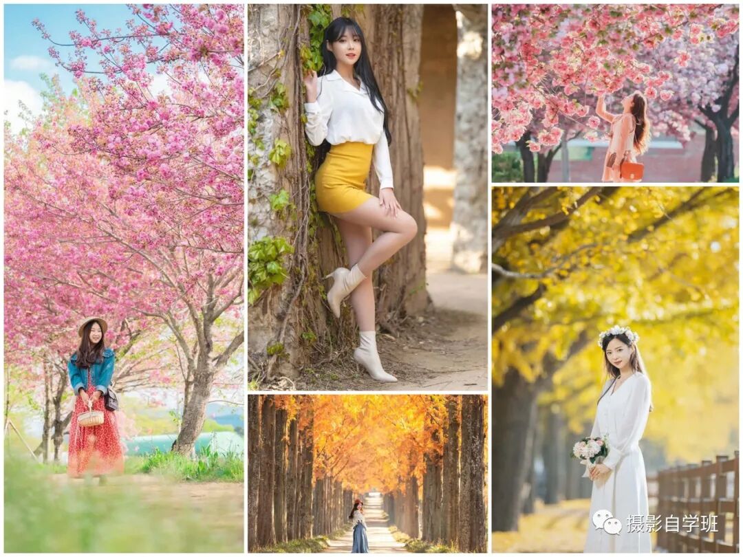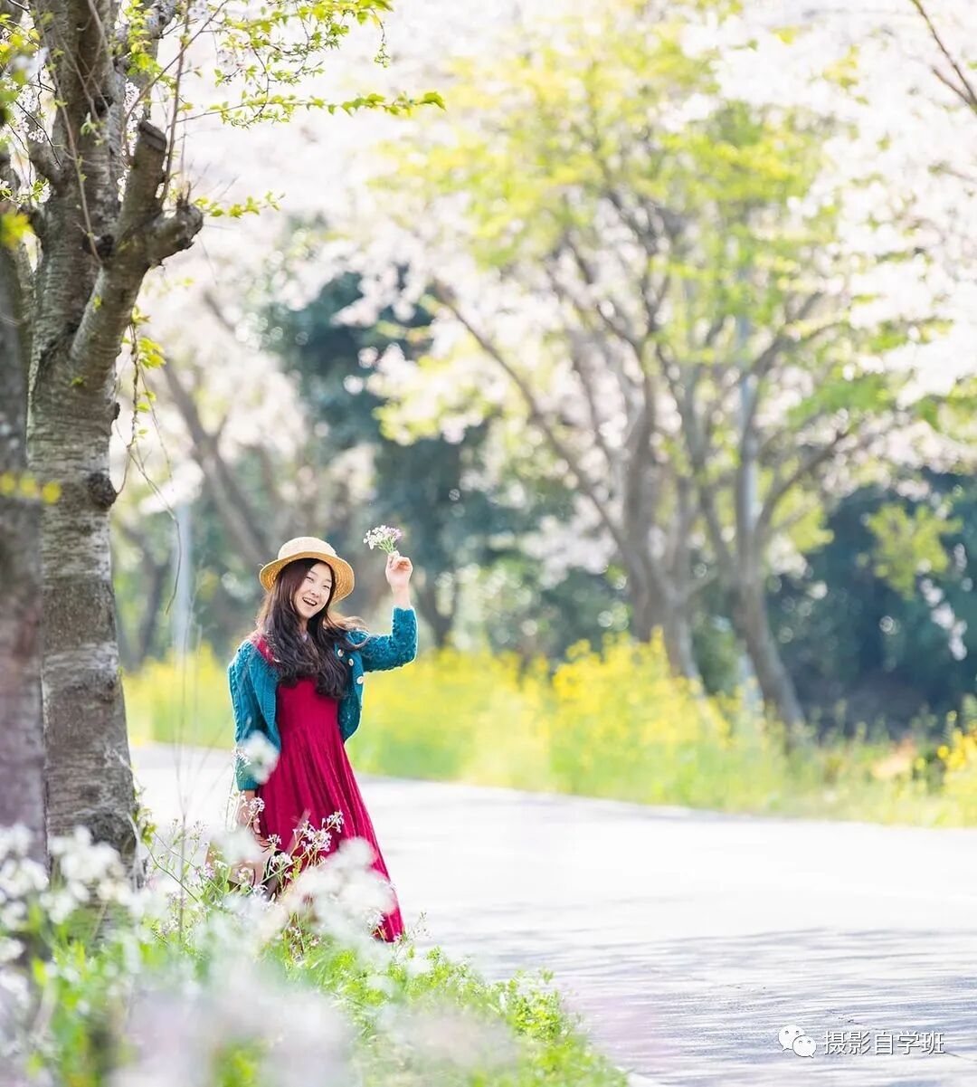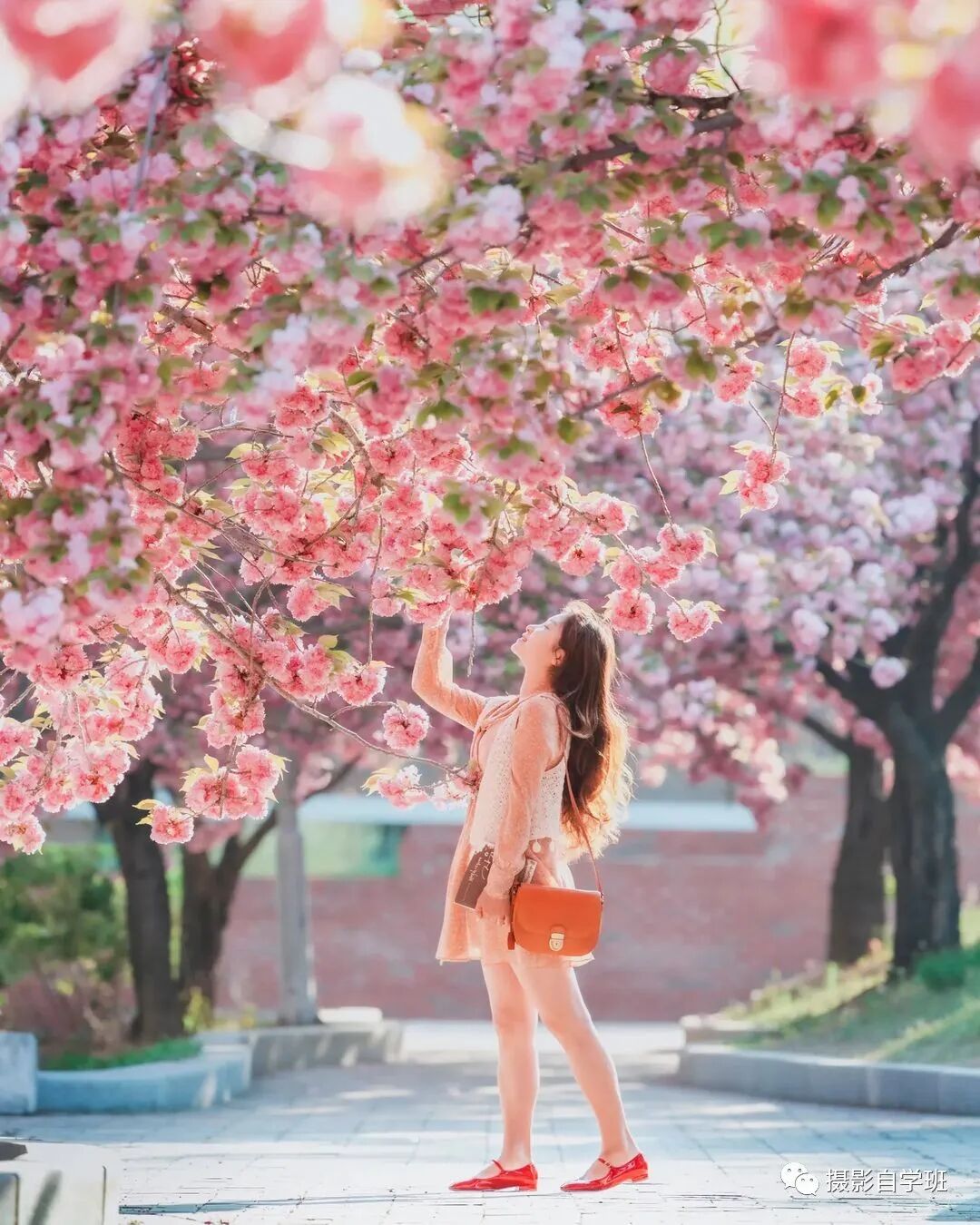 日常拍摄的时候,怎么能够发现更多美景呢?我们在平时生活中,要多加留意,寻找像图4、图5这样,有统一颜色的地方做背景。遇到图4这样的花树时,拍摄前,自己可以带着一个凳子,拍摄的时候,机位就能适当高一点,用上方的花,来挡住镜头,形成上方前景虚化。
