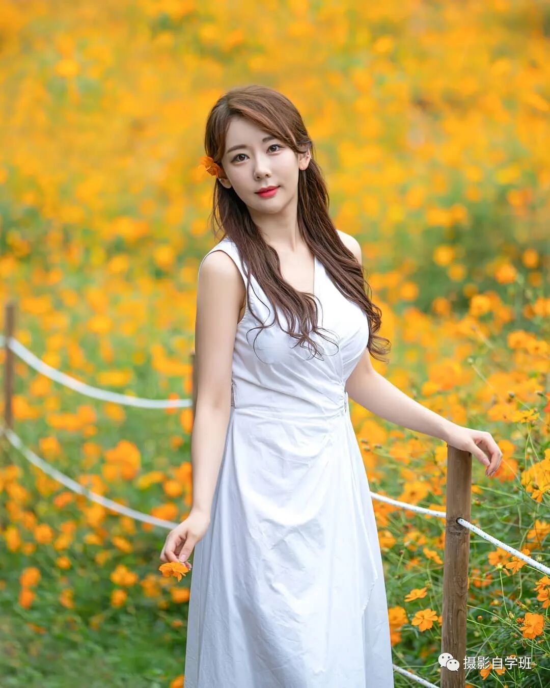 在日常生活当中,结合美景拍照片,怎么能够让姿势看起来,优美且自然呢?要记住这两个字——扭动。像图6这样,可以抬起脚,并且放下手的时候,扭动腰部,或者像图7这样,把手自然放在下方,轻微扭动头部,扭动之后,就可以让人的身体,更加体现出曲线,这样的姿态,就会更优美了。