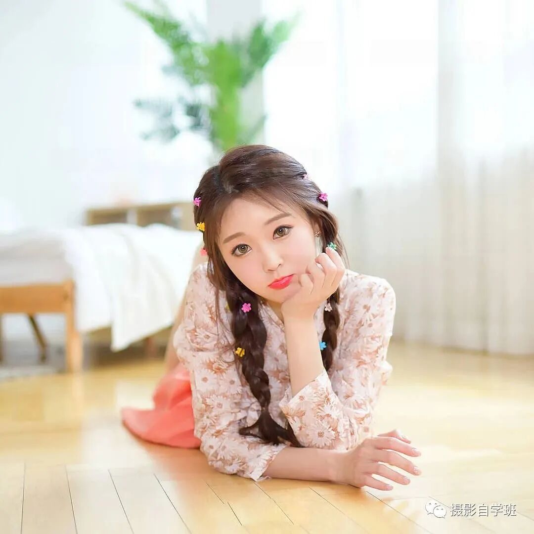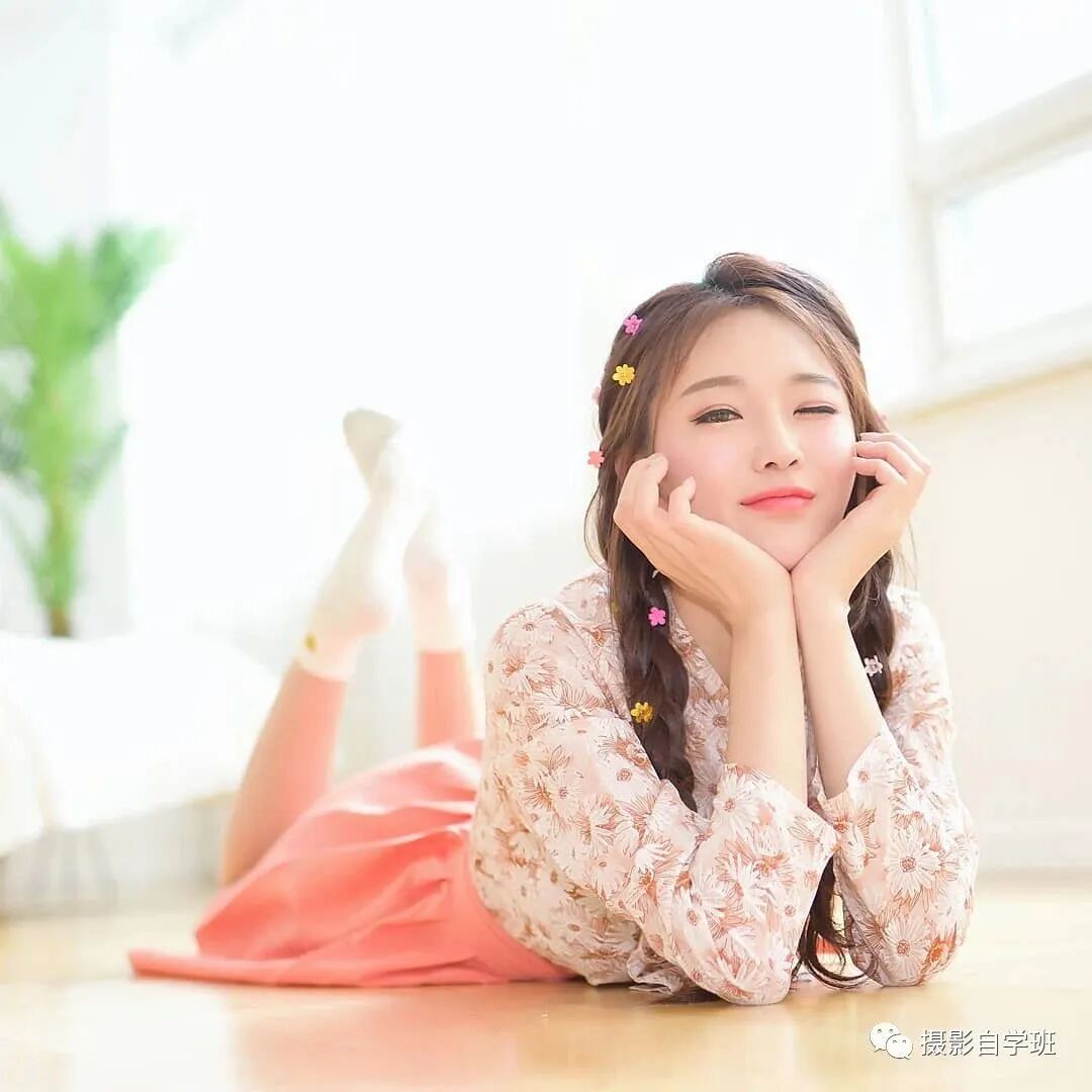 摄影摆姿技巧就要全面,这里还为大家介绍一下,可以在家中,像图6与图7这样,趴在地面拍摄。像图6这样,一只手放到上方,一只手托着下巴,或者像图7这样,两个手都托着下巴。但在摆姿势的时候,也要避免现场形成的错位关系,不要像图6这样,在头顶长草。