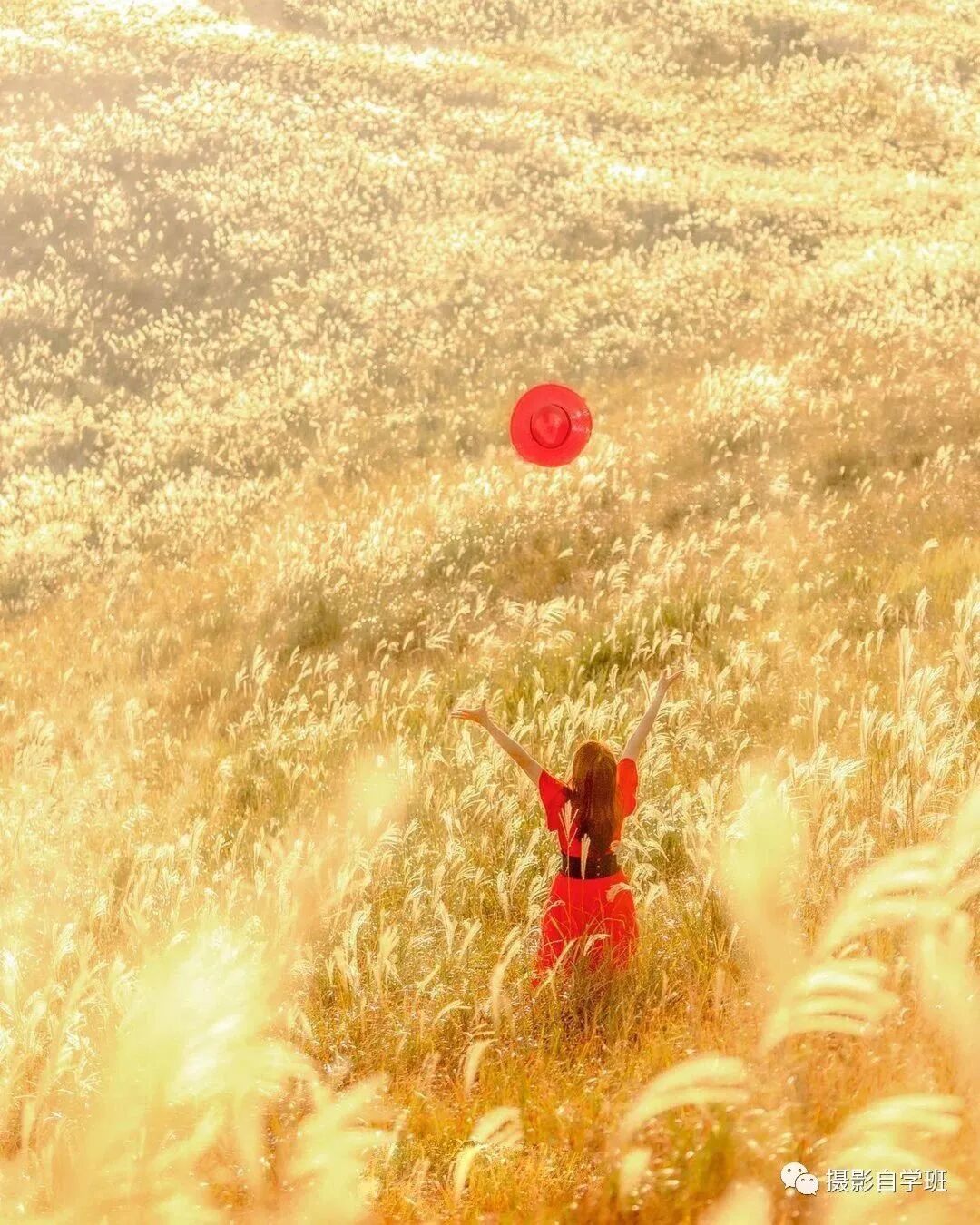 想拍摄一些人像风景照片,让风景看起来广阔,让画面看起来干净,那就可以像图12这样,寻找一片草坪,如果想让画面更加美,拍出纯真的效果,那就要找准拍摄时间,最好是在太阳落山前的一两个小时,此时光线柔和,而且光的角度更低,光的颜色更暖,会给这些草的边缘,形成漂亮的轮廓光,被拍摄的人,穿着一件与周围风景有明显颜色区别的衣服,纯真的效果,就体现出来了。
