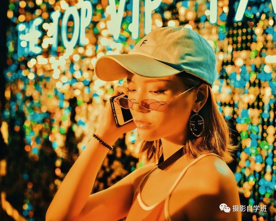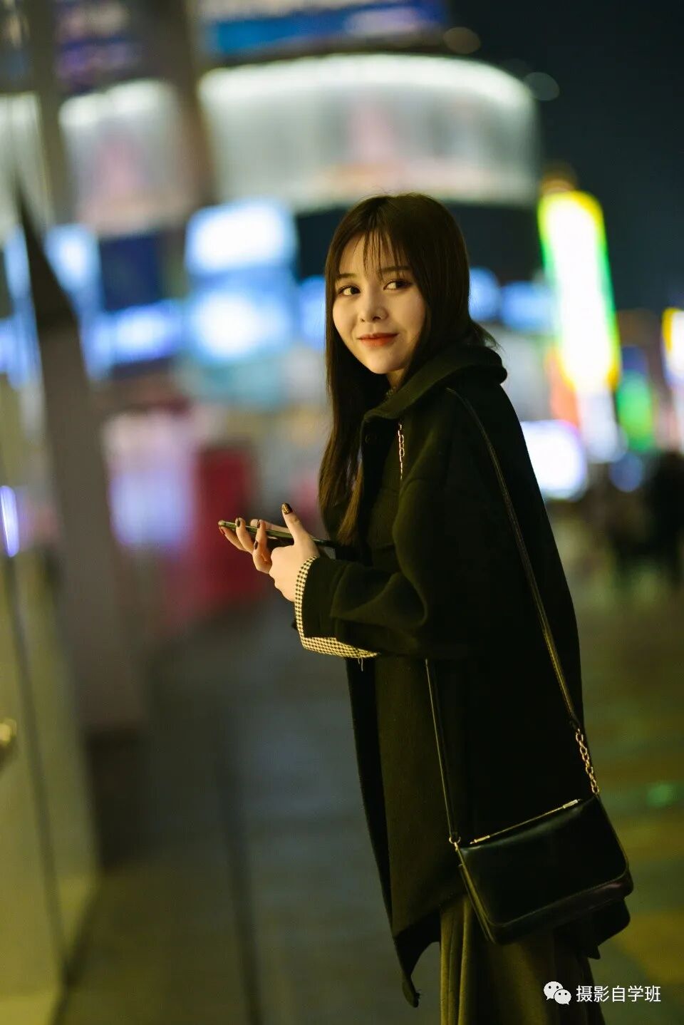 可以找一些公交站白色的广告灯箱,人的脸在有光的一侧,夜里街上拍出来的照片,人脸就不黑了,背景光还会被拍成漂亮的光斑。