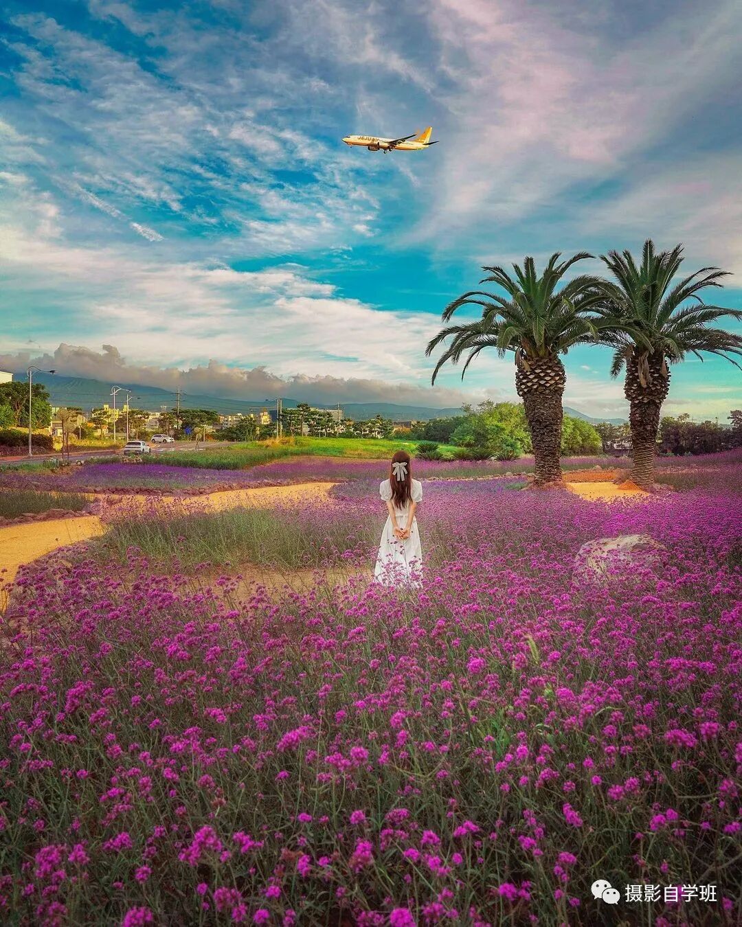 像拍图6这样的背影照片时,因为天空非常漂亮,此时不应该站着拍摄,而应该蹲下,把相机放到地面,从下向上仰拍,用特殊的角度,来让普通日常的照片,看起来更加不一般。