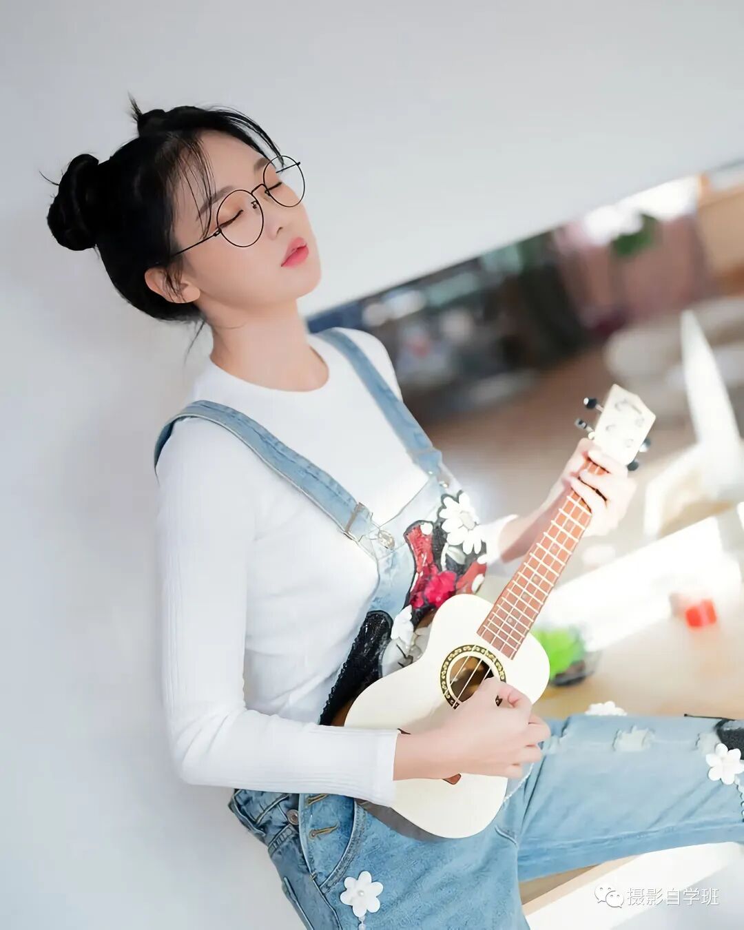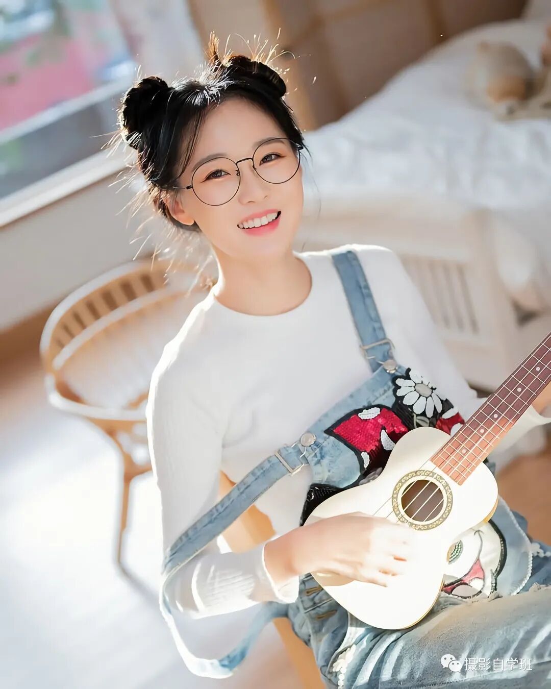 图7与图8这张照片是生活照,使用大光圈镜头,背景被拍得很虚化,人在窗口边,脸上也有光线,并不暗,但存在一些小瑕疵,你看小尤克里里上,局部过曝,导致照片细节不好。这些小细节,都会影响这张照片,拍摄的时候一定要注意避免,如果此时光线太强,可以在窗上,拉上柔光帘,来柔化光线。