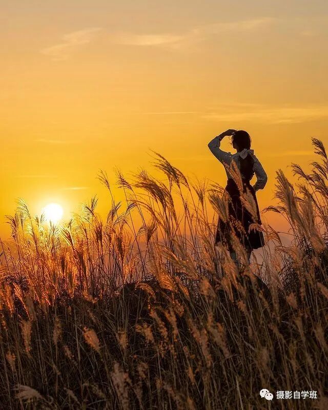 在秋天,我们也可以来到图4这样的苇塘当中,让秋风吹过头发,拍出洒脱自然的照片。如果想让画面,更有故事感,就要像图4这样,眼神忧郁一点,看向远方,不看镜头,若有所思的样子,就能让照片,充满故事。