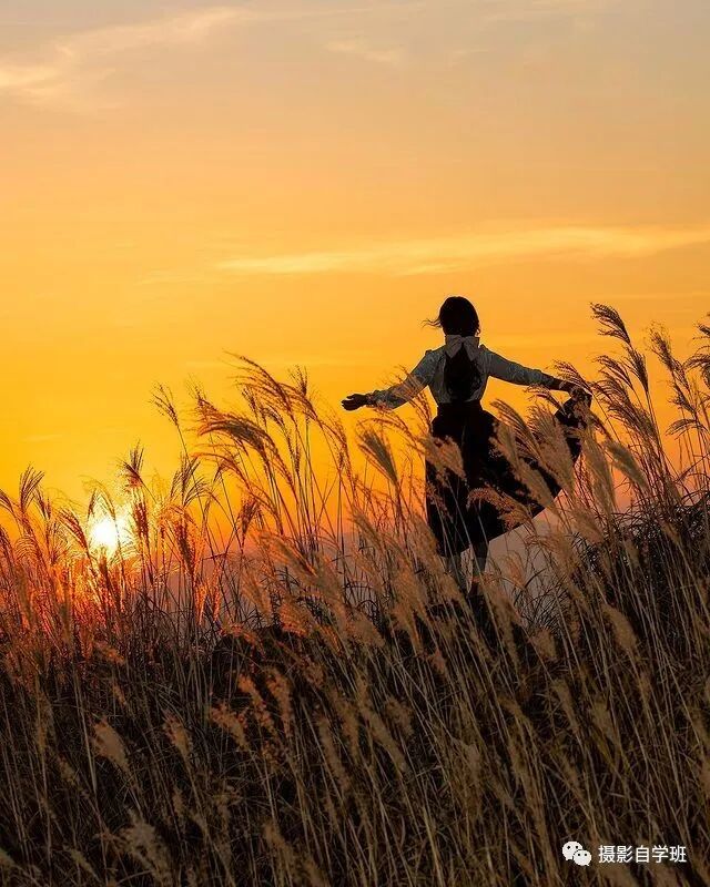 还可以像图5与图6这样,逆光拍两张漂亮的剪影照片,拍剪影的时候,侧光点要选择在明亮的地方,对焦在人物上,这样人物的影子,就会更加清晰,逆光的时候,可以让周围的草,有漂亮的轮廓光,如果被拍摄的人,没有姿势可摆,可以提醒她撩起裙角,更显飘逸。