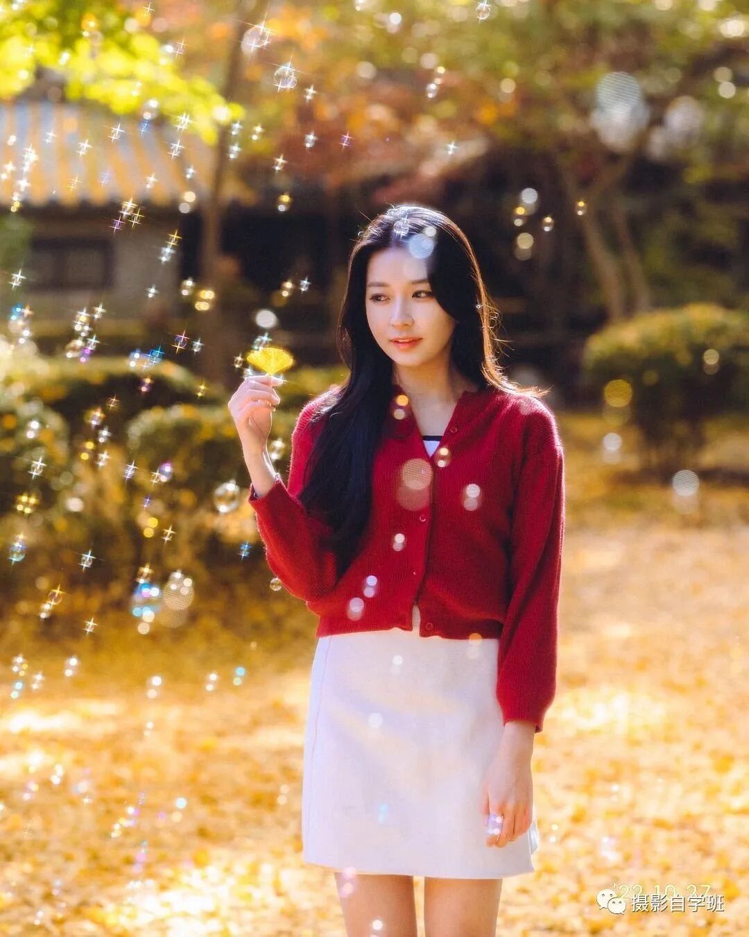 如果取景范围比较小,镜头离被拍摄者比较近,像图3这样,那就可以让被拍摄的人,居中一点。拍摄的时候,准备好泡泡枪,在有光的情况下喷出泡泡,可以拍出图3这样五彩斑斓的效果。