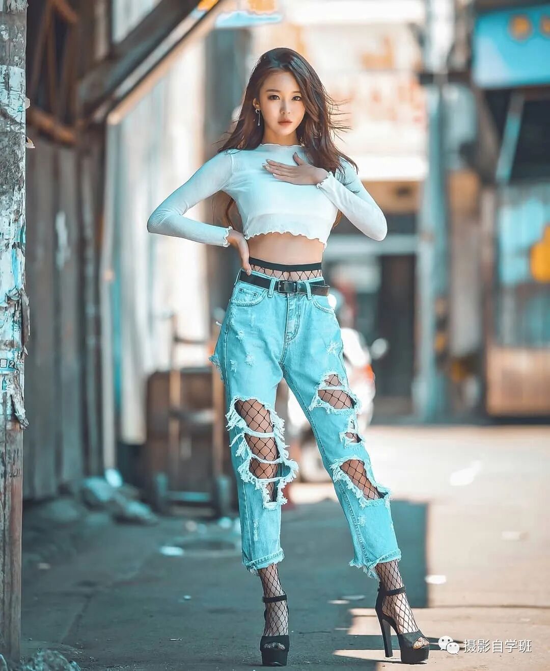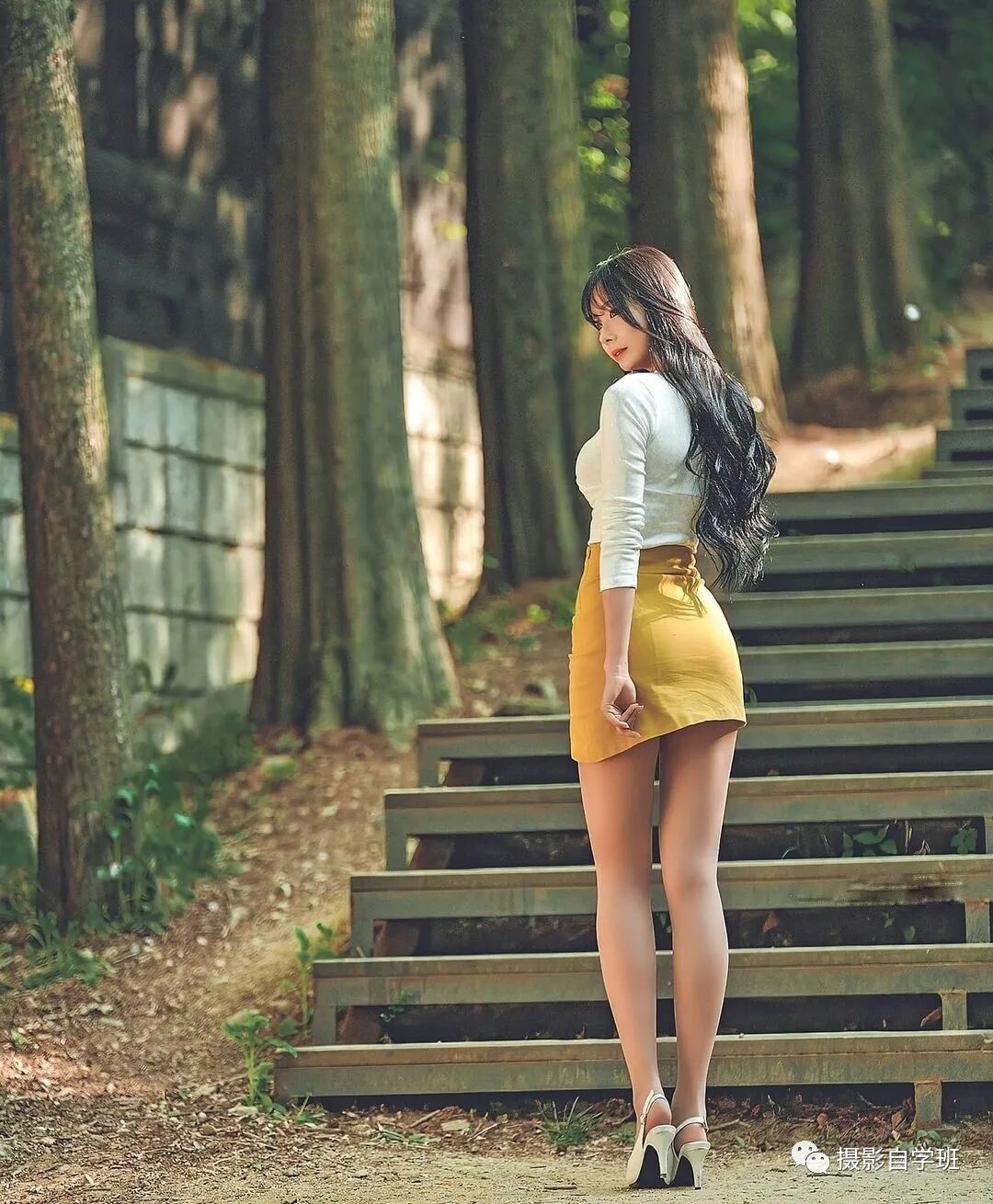 身体扭动可以让自己看起来更加自信和生动。当拍摄照片时,可以尝试稍微扭动自己的身体,让身体的线条更加流畅和自然。同时,可以调整手臂和腿部的姿势,让自己看起来更加优雅和自信。姿势想要自然优雅,就要让被拍的人动起来,如如果拍摄全身照片,就让被拍的人像图6和图7这样,扭动起来,身体有曲线,拿相机的人再蹲下,从下往上仰拍,人就会更显瘦,显得优雅挺拔。