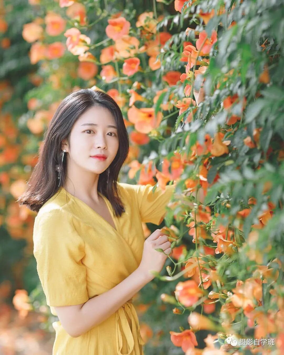 当不知道该怎么展现自己的姿势时,可以尝试倚靠在某个物体上,比如一棵树、一堵墙等等。这个动作可以让自己的身体更加放松和自然,从而呈现出更加优雅和自信的姿势。像图10,被拍的人就是依靠在身旁的物体上了。如果拍摄一些室内照片,还可以让被拍的人,像图11这样,双手托住下巴,但别用力,别把下巴上的肉推变形。引导她的眼神看向别处,照片就会自然优雅。