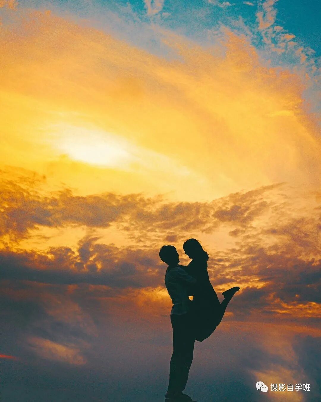 当拍摄场景中有一些有趣的缝隙或者框架时,可以利用它们来制造出一些有趣的效果。比如,可以让自己站在缝隙或者框架的前面,调整身体姿势,让身体与缝隙或者框架形成一定的角度,从而呈现出更加独特的视觉效果。以上是人像摄影取景上的缝隙,如果你想拍图5这样的剪影,那在摆姿上,也要有缝隙,无论是 两个人合影的剪影,还是一个人的剪影,都要让身体呈现出缝隙,这样光才能透过来,如果是黑乎乎的一片,全是影子就不好看了。背景颜色想要浓郁一点,可以在手机专业模式中,找到wb,夜景是白平衡,提高这个数值,画面就会变得更暖了。