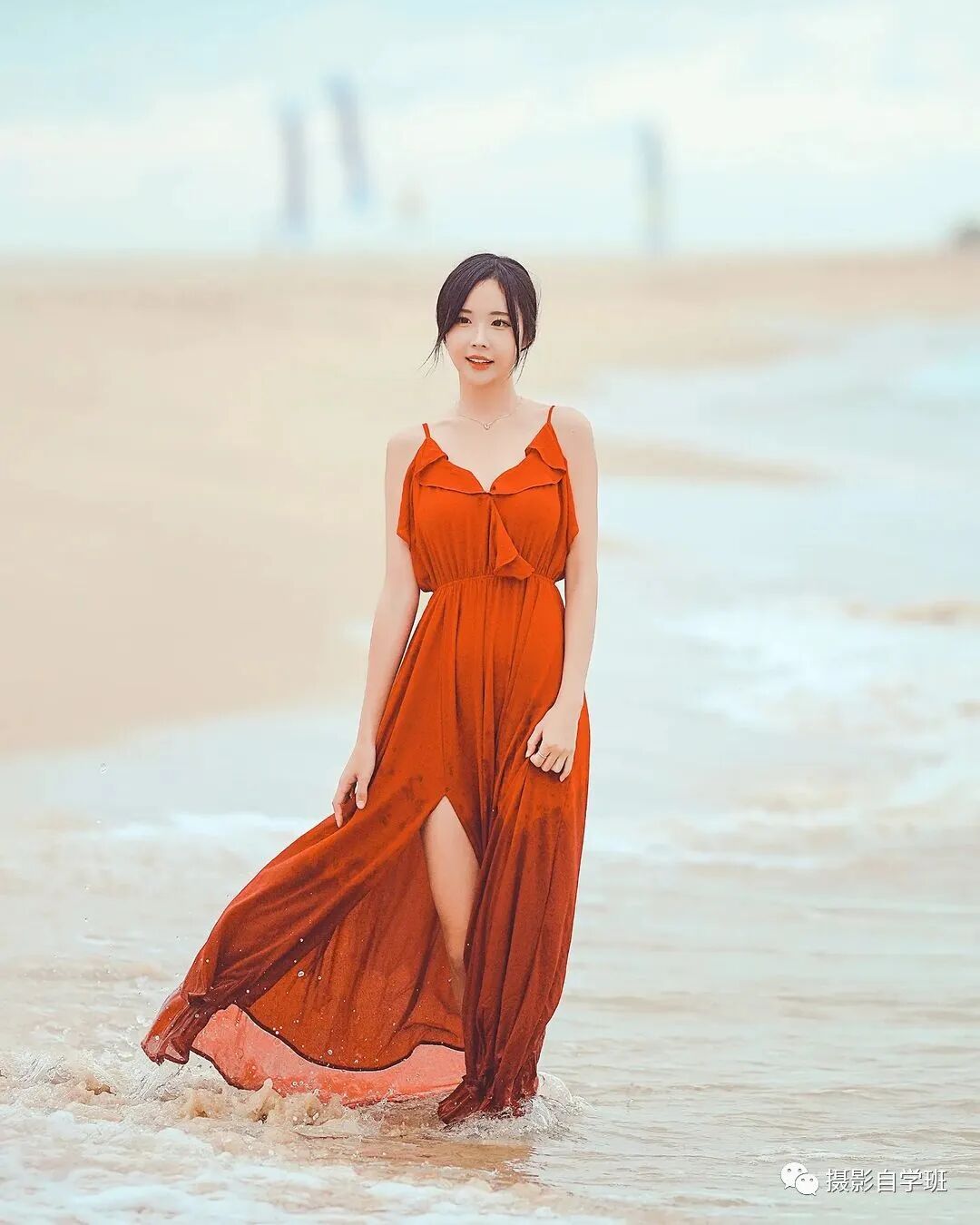 如果在海边拍照,让被拍的人沿着海边走,海风吹动裙子,非常优美。机位低一点,从下往上拍,这样可以让身体比例看起来更加协调,显得更加苗条。但要注意背景线条,不要穿过人的头,图11是正确的,如果线条比人再高一点,不正好压着人的头,就更好了。