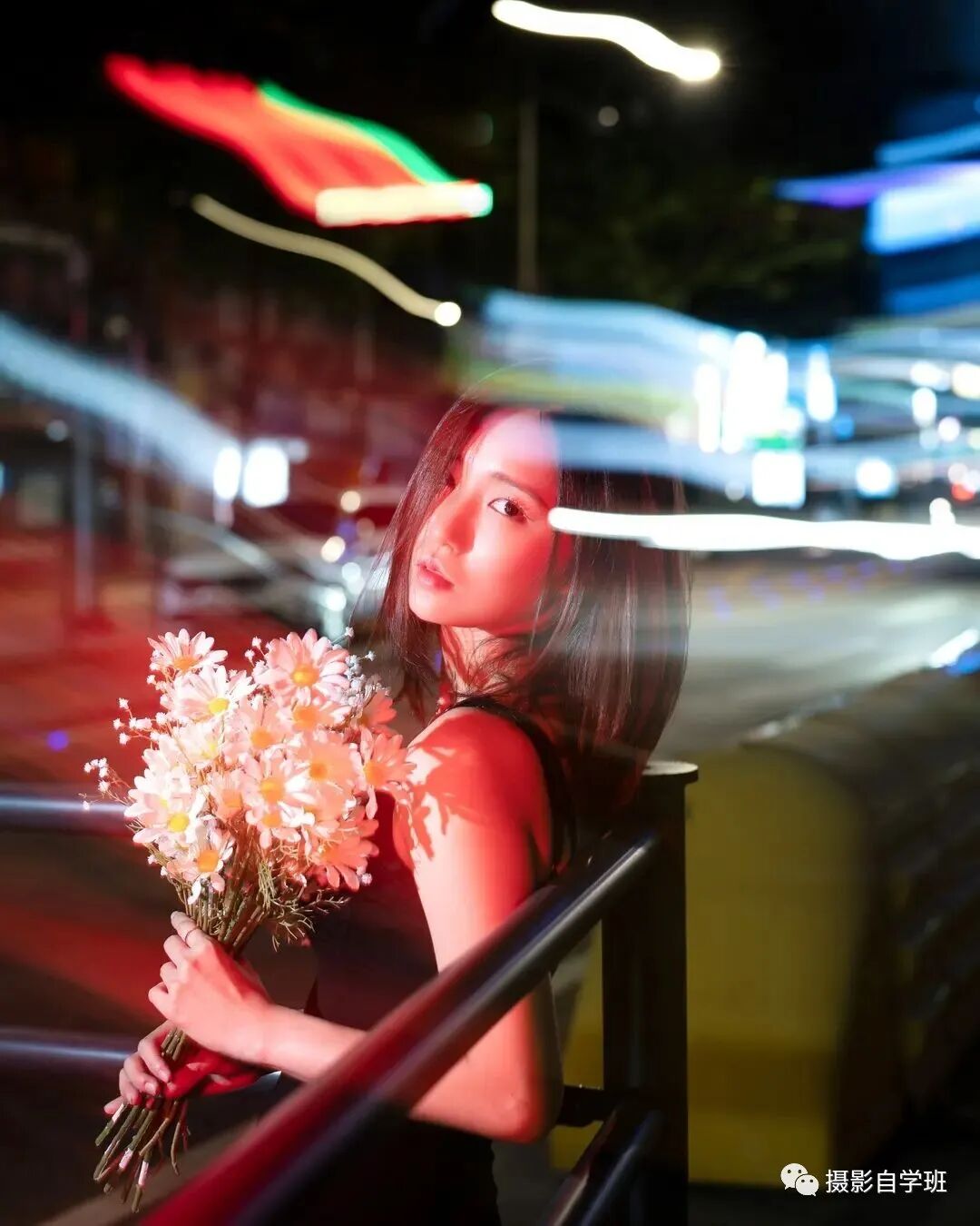 5句夜景人像摄影口诀,先记下吧:可依栏杆可依墙,还可改变面部光,脸可等车来照亮,自带道具拍更香,甩拍可以拖影长。