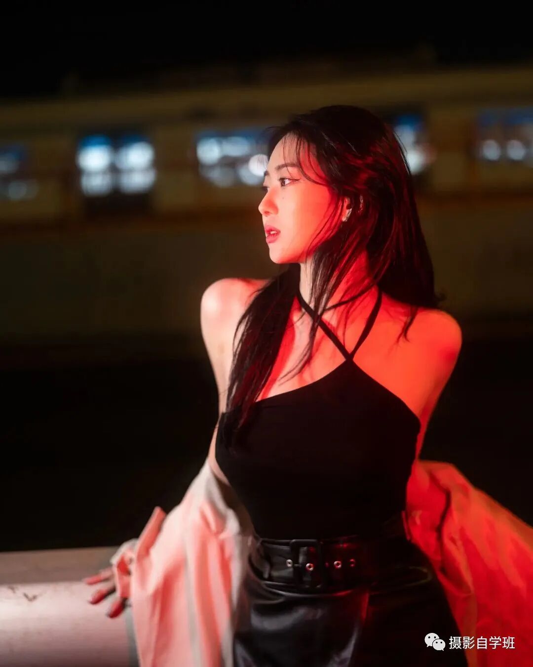 如果你有补光设备,可以像图3这样,照到人的脸上,但此时一定要注意,不要让光直直地照到脸上,同时要用柔光罩,这样才能让光线更加柔和,让脸上不会过曝。如果你的灯,能够变出其他颜色,就能拍出图4这样的红色氛围的照片了,但是如果不能变色,怎么能够在白色基础之上,也实现红色的效果呢?那就拍摄之前,准备红色透明的塑料,袋就可以了。