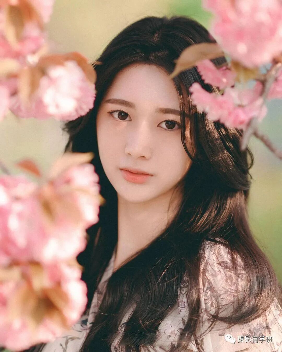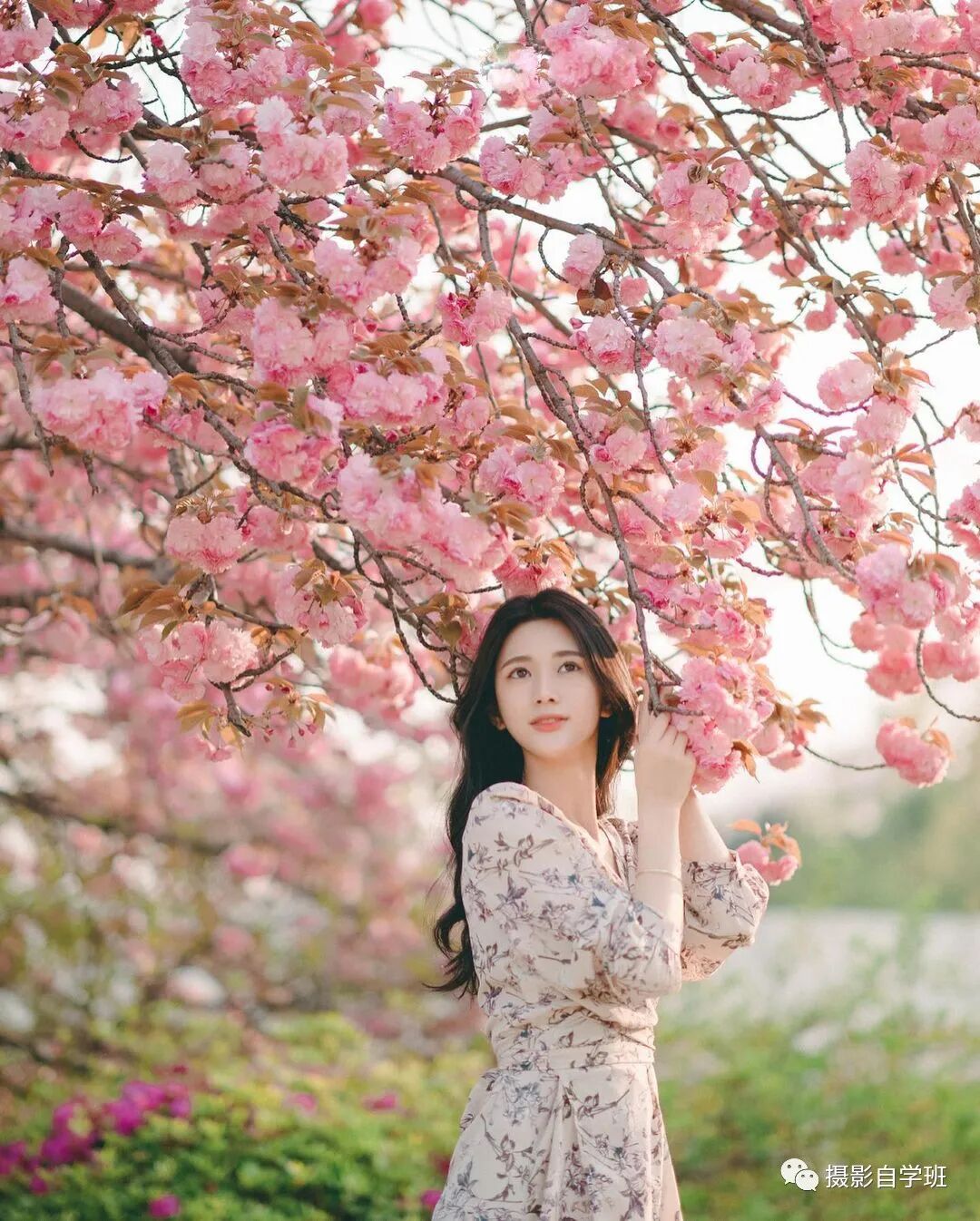这张照片的重点是,前景的花,要离镜头近,离人远,这样人才能更被拍得清晰,花才能被拍得更加虚化。