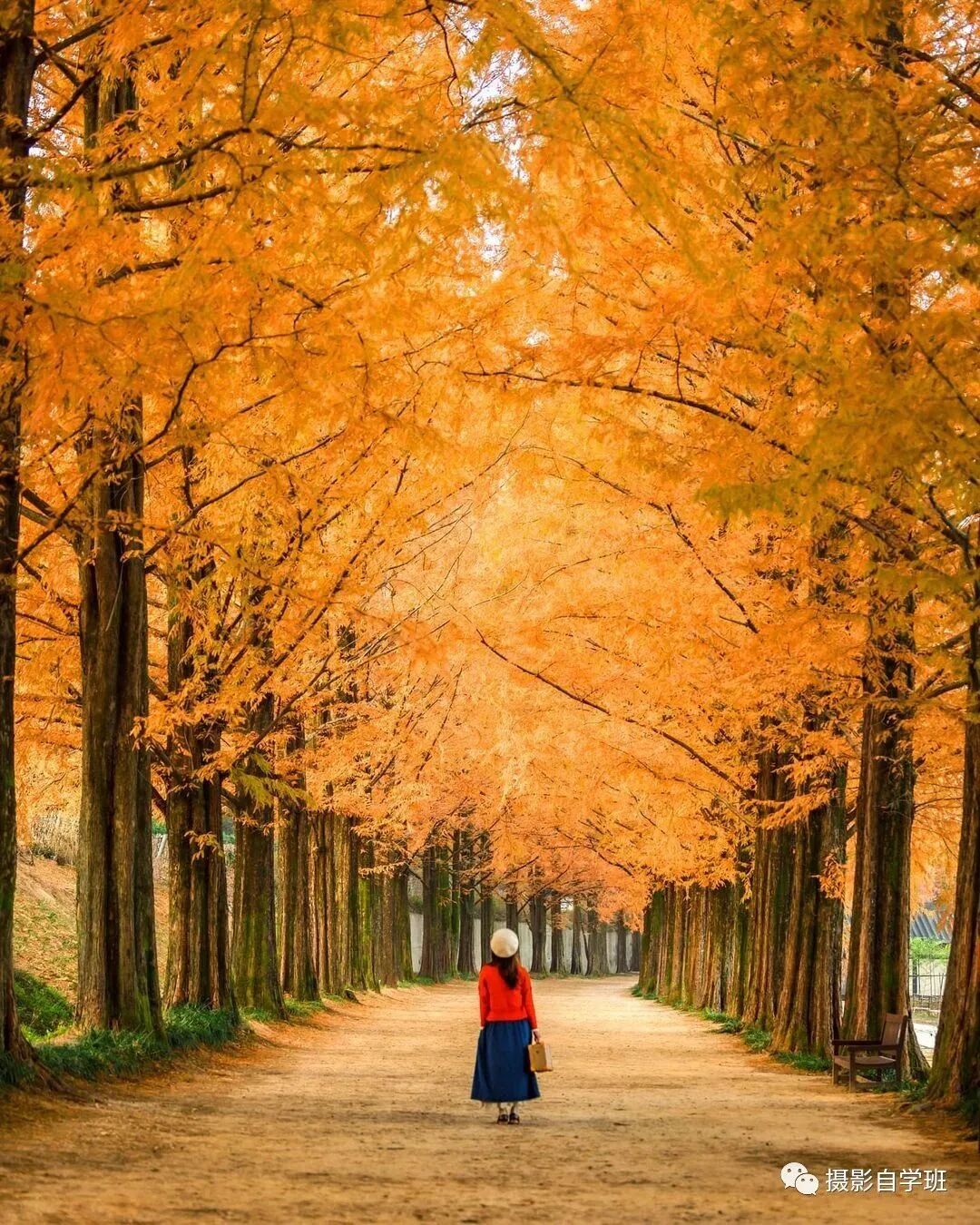 遇到这样呈线条的风景时,要顺着线条向前拍,图7的线条是栏杆,图8的线条是路,顺着线条向前拍之后,照片的纵深感、立体感、空间感就都有了,摆姿的时候,如果身旁有栏杆,那被拍摄的人,就可以像图7这样,依偎在栏杆上,不用摆出剪刀手了,如果遇到图8这样的路,那被拍摄的人,就可以径直地向前走,拍摄一个背影,也避免了剪刀手的尴尬。