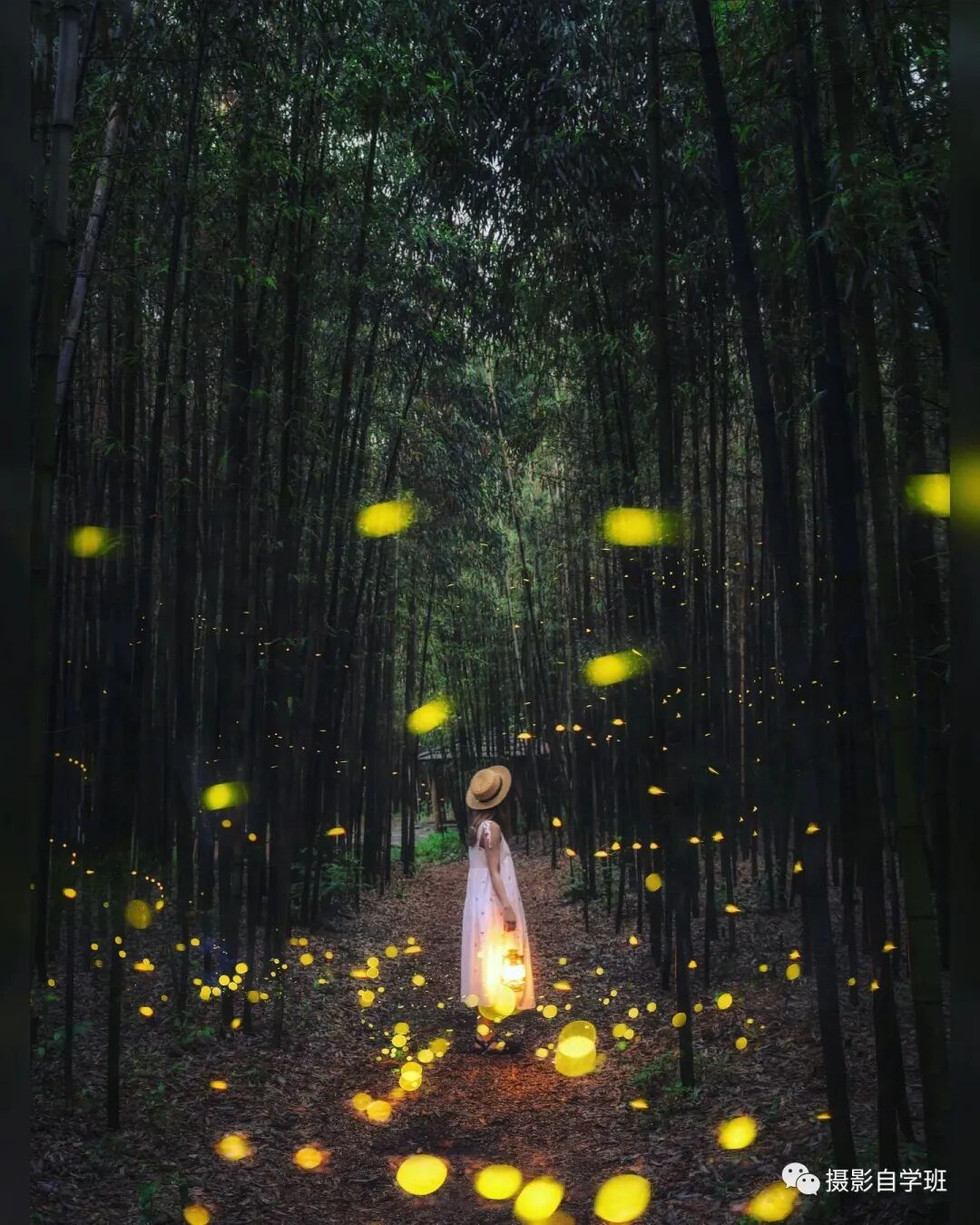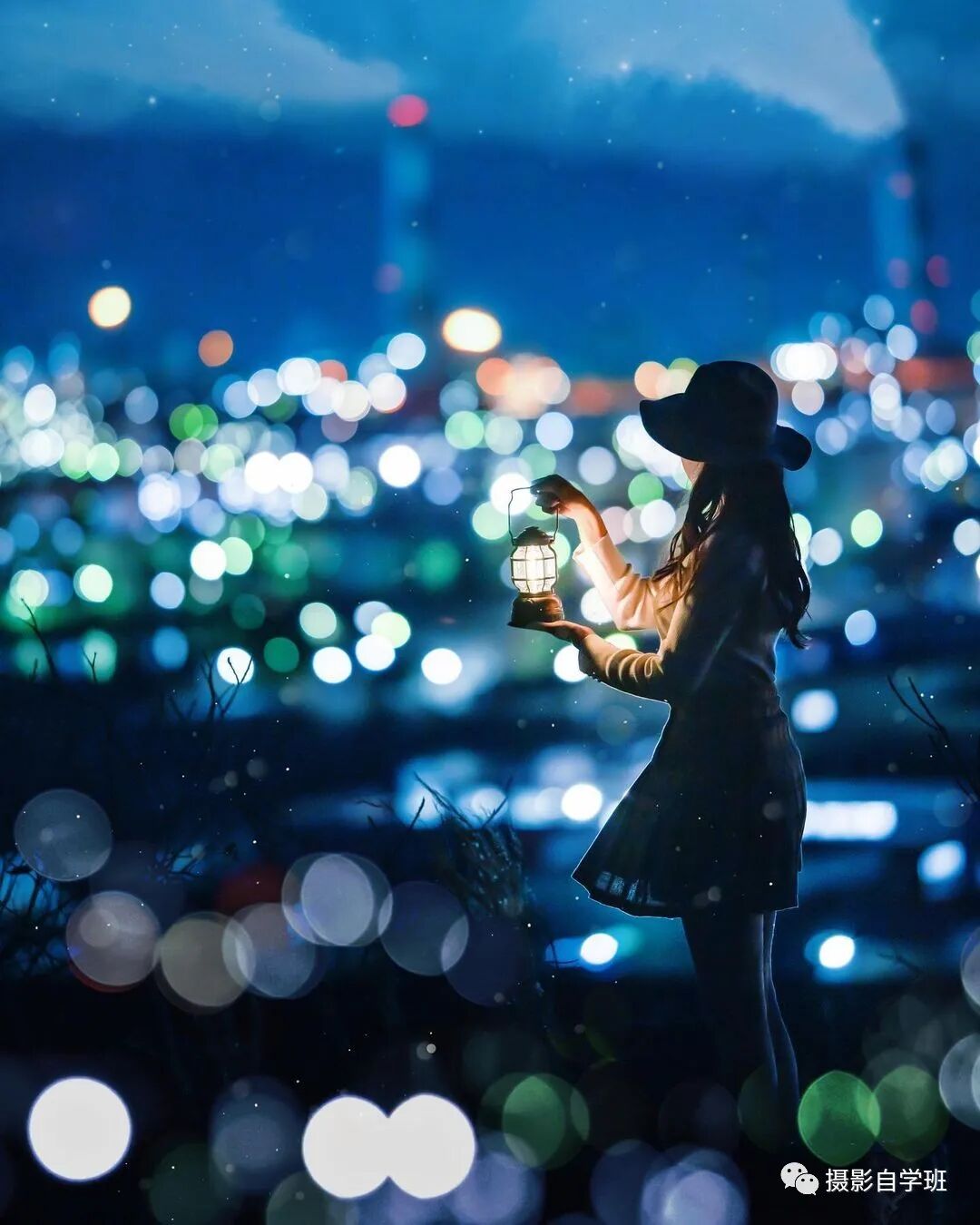 如果想在夜晚拍摄出一些光斑,我们可以来到一些小区的楼顶,像图10这样,调大光圈拍摄人物的剪影照片,人物不露脸,画面又很有美感,或者来到一些有萤火虫的森林当中,调慢快门的速度,就能把萤火虫的光,留在你的画面当中了。