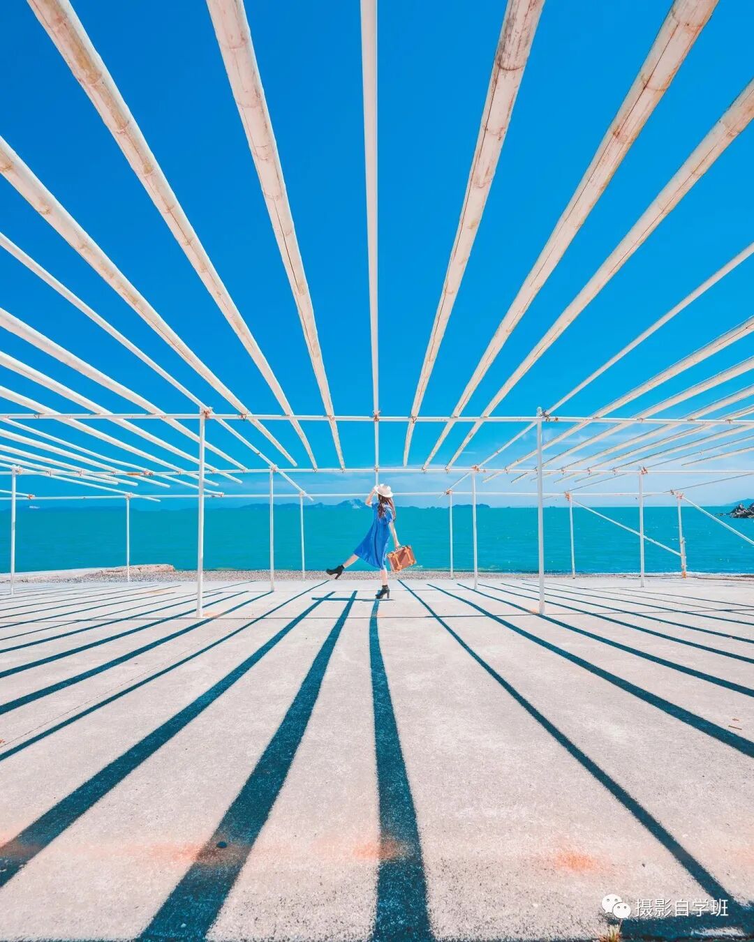 图8是用秋千的线条,形成了一个框,突出了主体人物,让画面主次对比更加明显,图9就更好了。上方有线条,下方有影子,人物居中,画面更有纵深感,有穿透力,拍摄这样不露脸的照片时,利用好线条是其一。其二,要等路上没有多余的杂乱的人,让你的照片更干净简约。