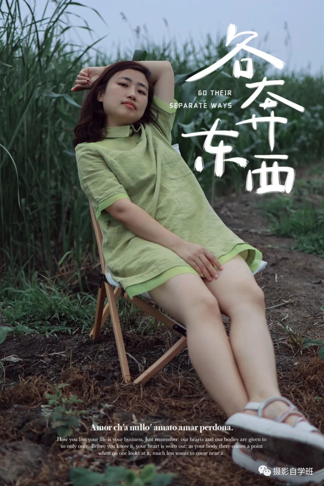 从构图的角度来说,这个可以理解为对角线构图。从画面的一角延伸到对角,有较好的视觉引导作用,但是用不好的话,就会适得其反。像上图一样,构图很刻意,把人物姿势拍摄得坐不像坐,躺不像躺。我们既要从人物舒适的角度出发,也要让观者觉得好看,这样的构图才成功。