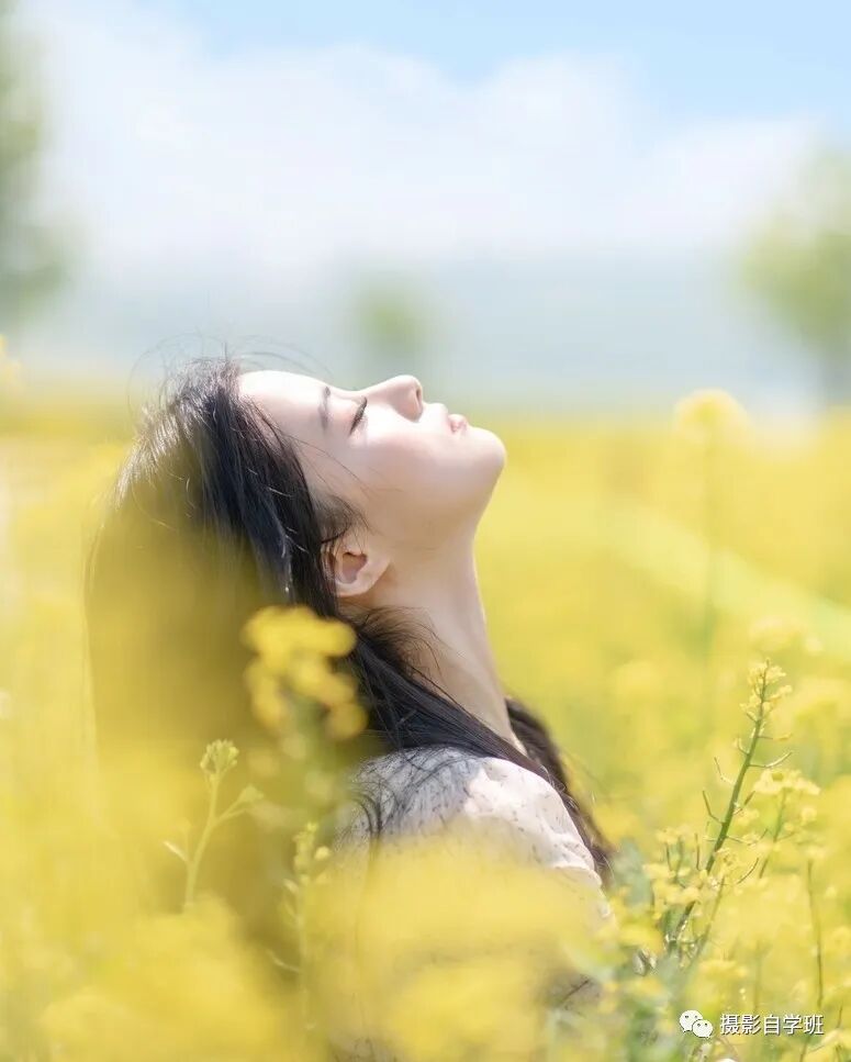 上面这张照片,仰面向天空的姿势不错,但是背景当中,有明显的横线,穿着人物的面部而过,这是人像摄影当中的大忌,我们在拍摄的时候,一定不要让背景的线条捣乱。解决方法很简单,可以像下图这样。