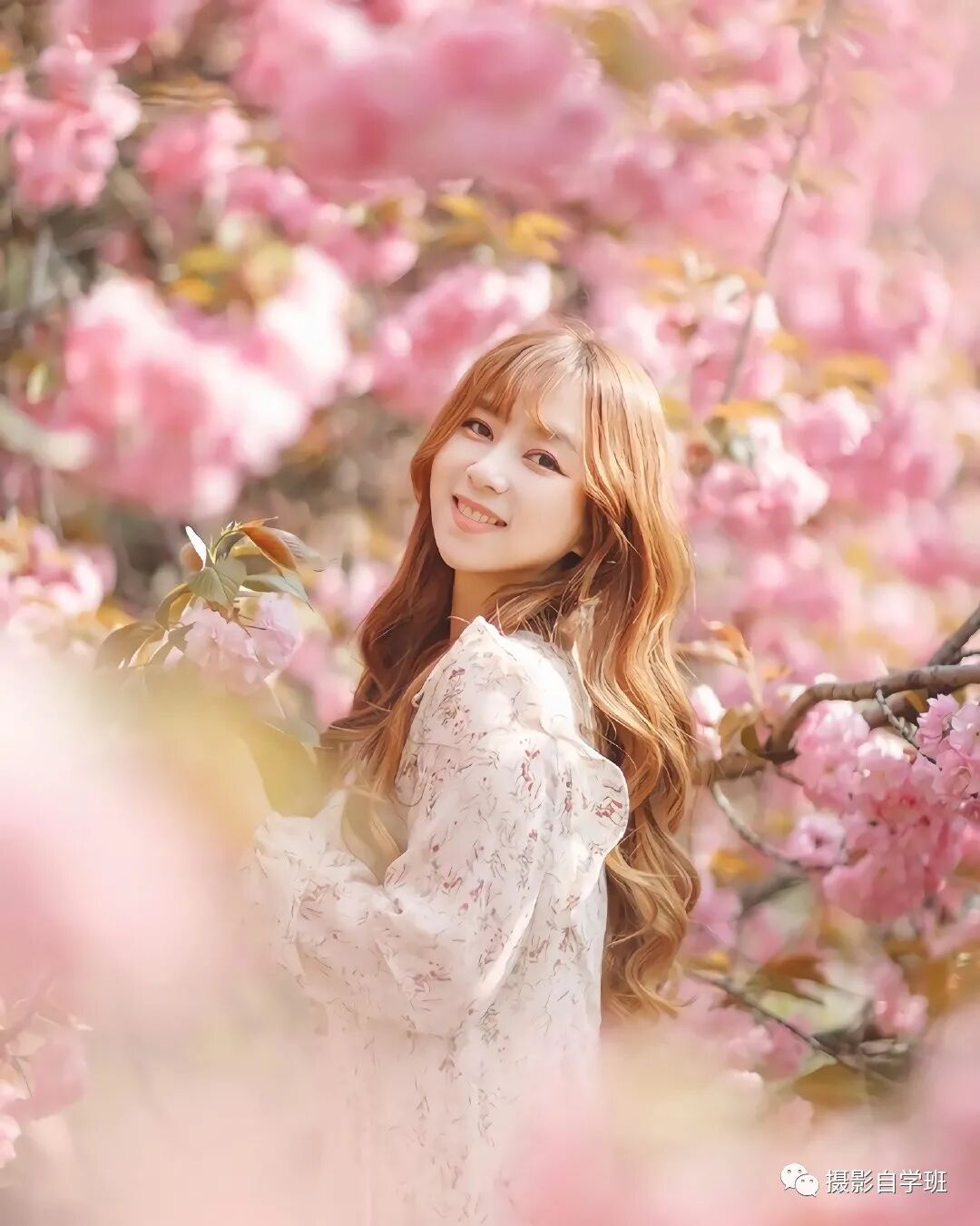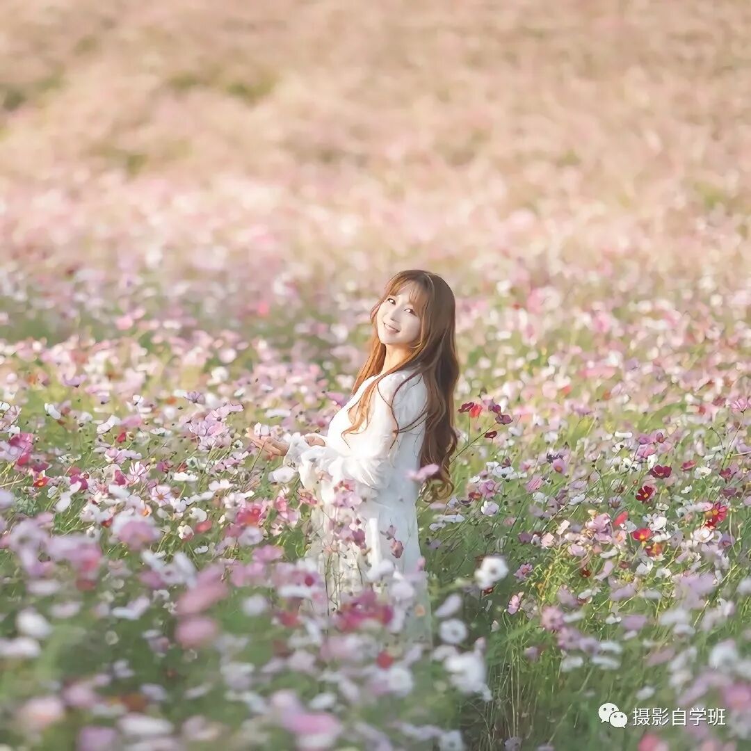 你可能也听过这样一句话,如果你的照片不好看,是因为你距离拍摄的主体不够近。像上图这样可以调整角度,让整个背景都是花海,人在花海当中与周边景物区别开来,必然会被突出。可以像下图这样拉近镜头与人的距离,让人更被凸显,照片就会更好看一些。