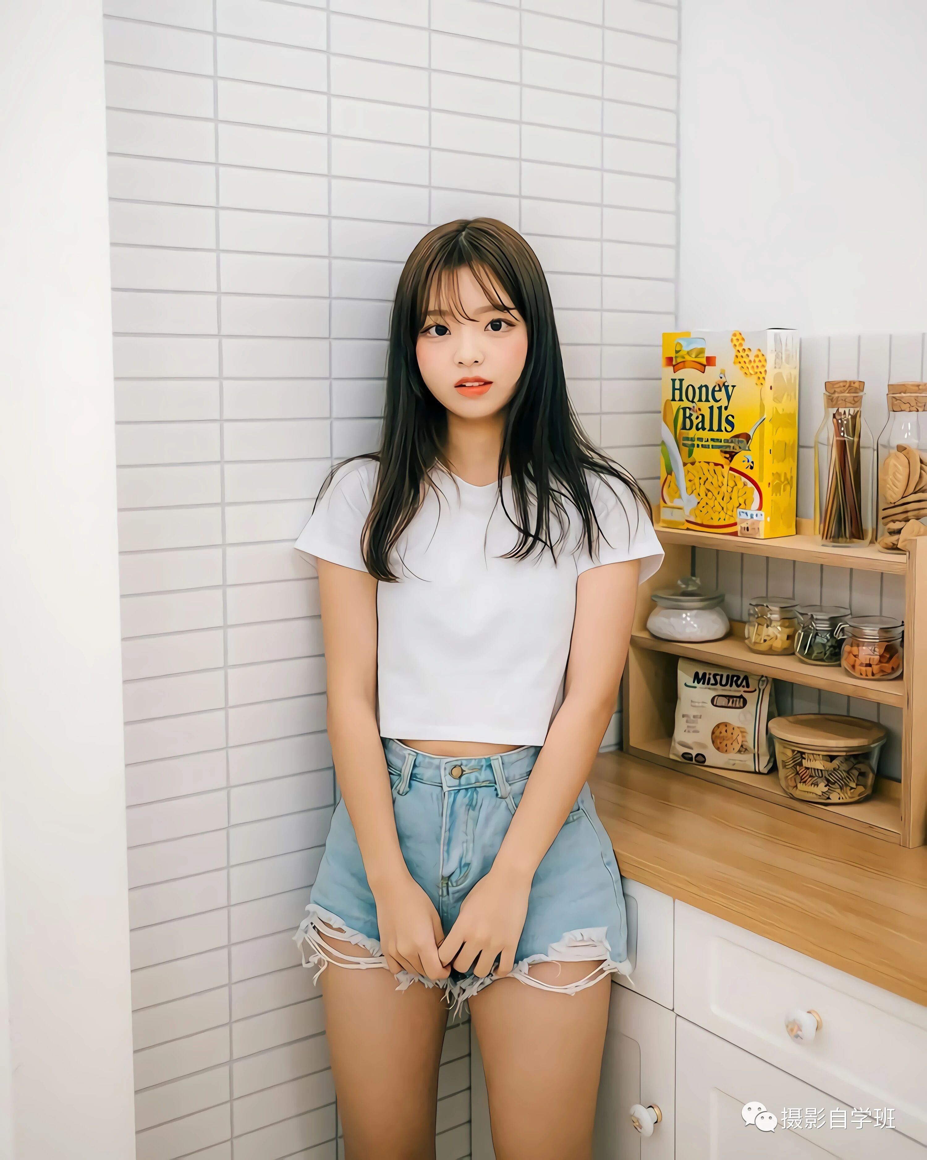 记录,可以让摄影更有意义,在家中拍摄时,可以把厨房收拾好,让被拍的人,像上图这样,直接站在墙角就好了。或者让被拍的人,坐在门边,姿势虽然没有特点,但足够自然大方。