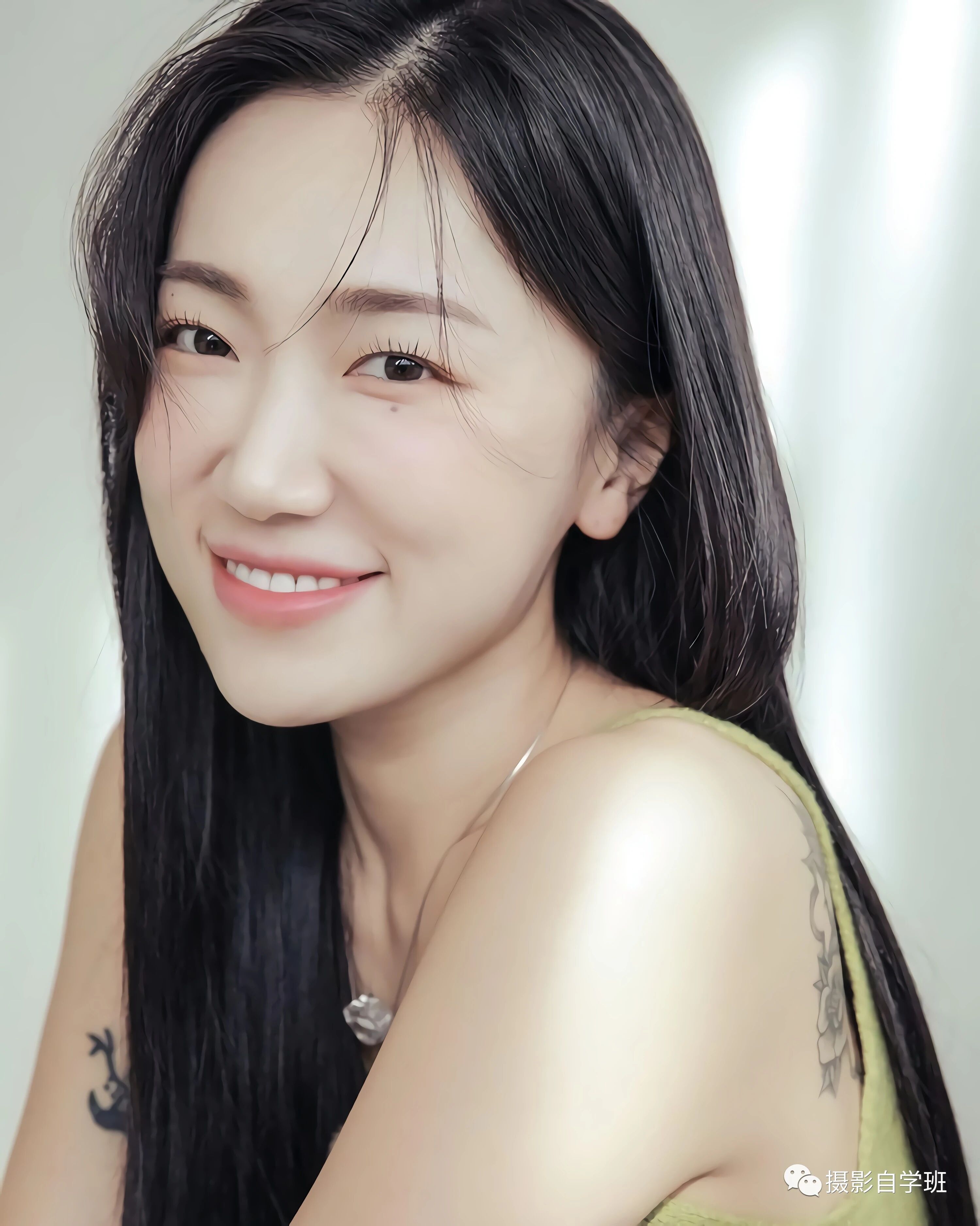 也可以在家中拍摄,找一面白墙,在有光影的时候,让被拍的人,像上图这样,面对镜头微笑,或者像下图这样,把胳膊横在前面,一只手扶在肩膀上。