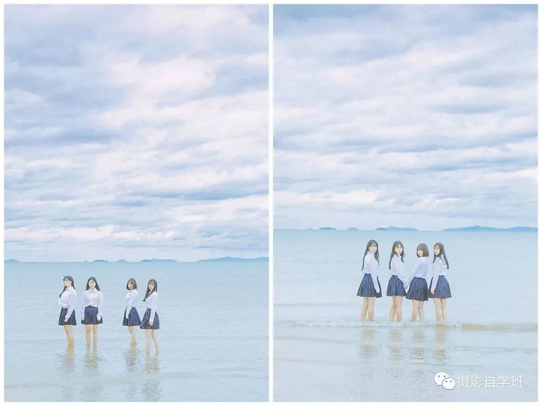 和闺蜜们一起去海边玩儿,想拍一组照片,如果人比较多的话,建议像上图这样穿着的衣服最好统一一点,让多个闺蜜在一起拍出来的照片,看起来统一性更好。可以像上图右侧这样,所有人都回头看向镜头。