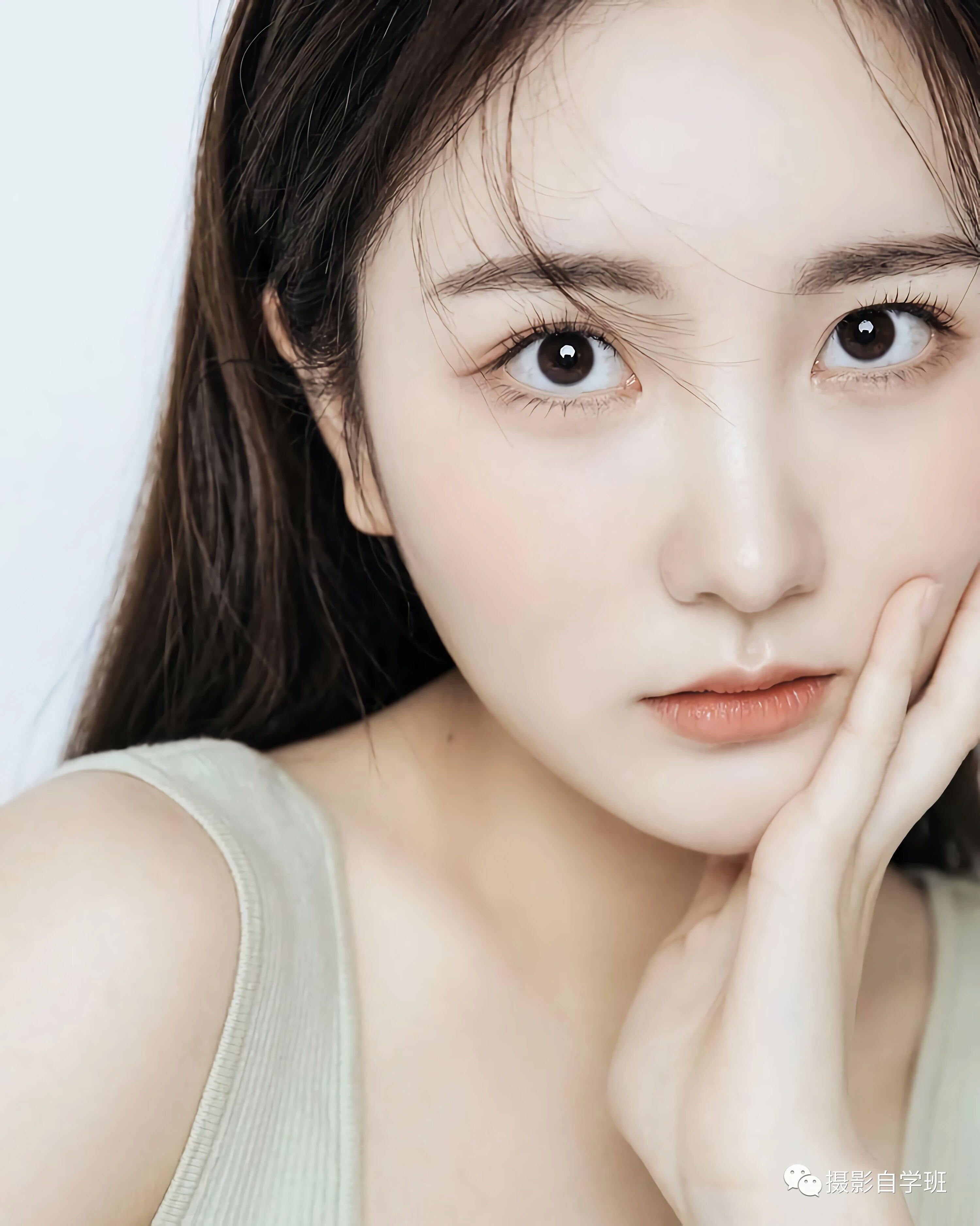 在面对镜头时,要学会用好双手,他可以帮你摆出很多不同的姿势,比较经典的姿势,像上图这样,把两个手放在下巴下面,显得可爱,但是这种姿势比较适合小女孩,稍微成熟一点的女性朋友,就不太适合了,那可以像下图这样,把两个手伸到镜头前,让镜头对焦在人物的眼睛上,靠镜头较近的两个手,就会相对虚化,这样拍照片有层次,姿势又经典。