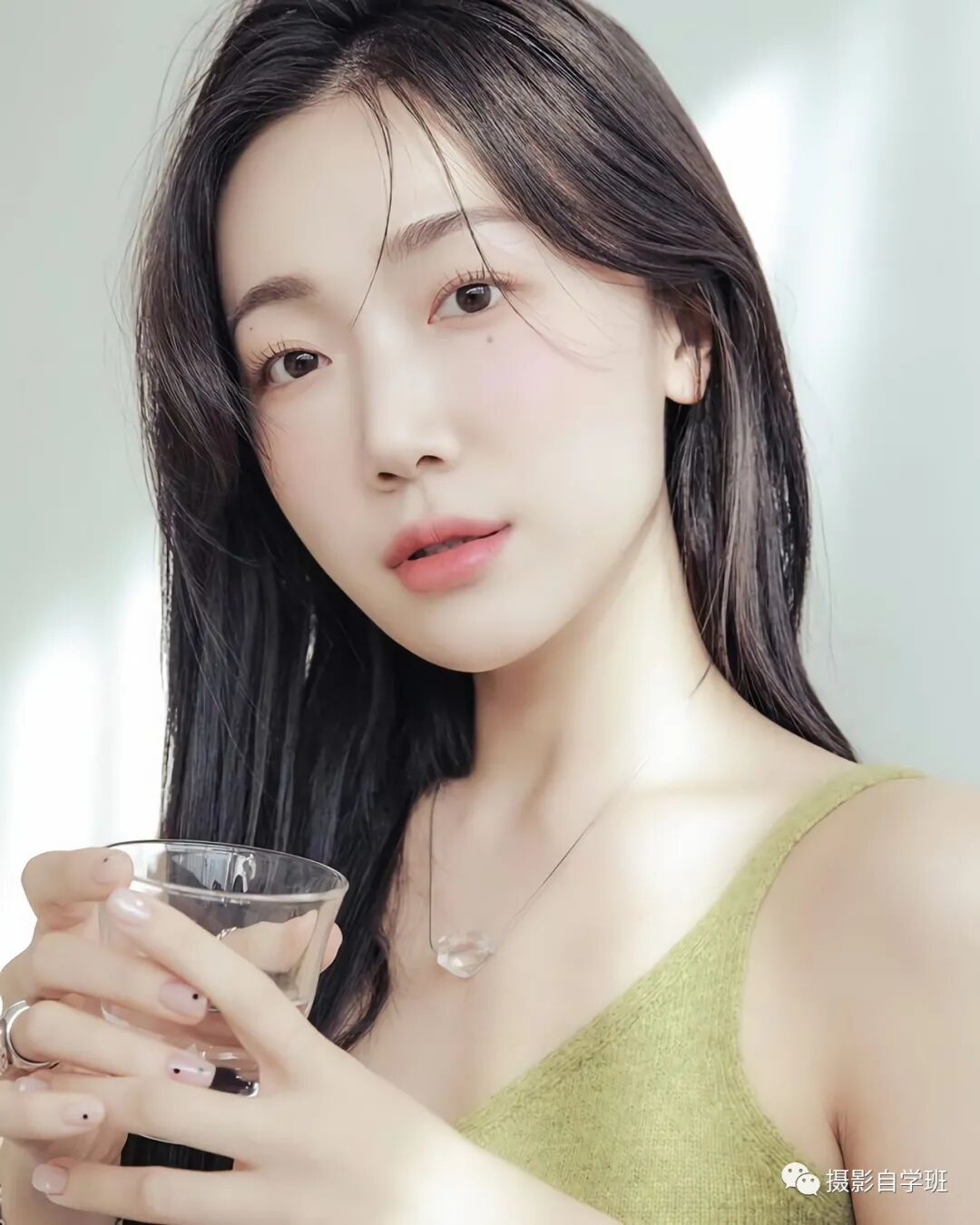 还可以拍一些类似于大头贴的照片,但是不建议像上图这样,把一个手放在下巴处,它会把你的脸挤变形,而如果手没有地方放的话,最经典的姿势就是像下图这样,准备一个杯子,两个手拿个杯子,就有处安放了,也不会显得尴尬。