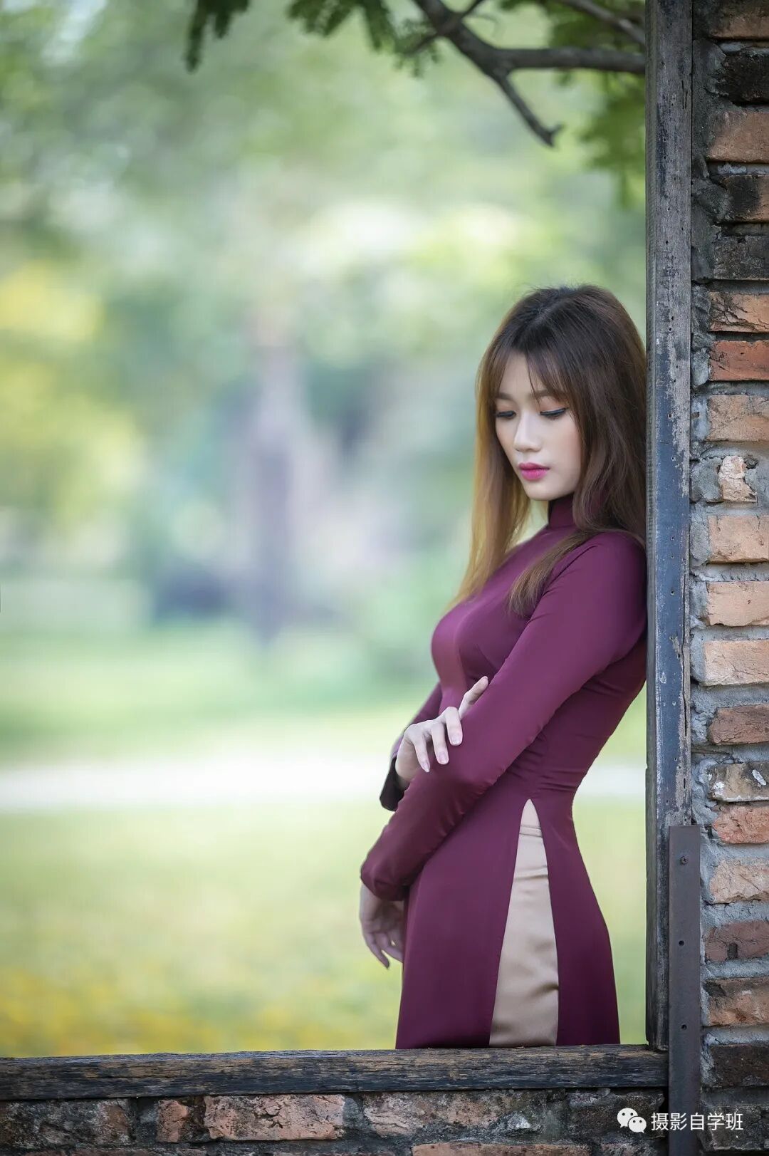 另一幅画面(下图)靠着墙面,画面重心稳定,整体就会耐看。要着重说一下这个“靠”,不管是靠墙,还是靠树,都要注意,腰部要与这些被“靠”元素,有一定的空间,不然画面会略显呆板。
