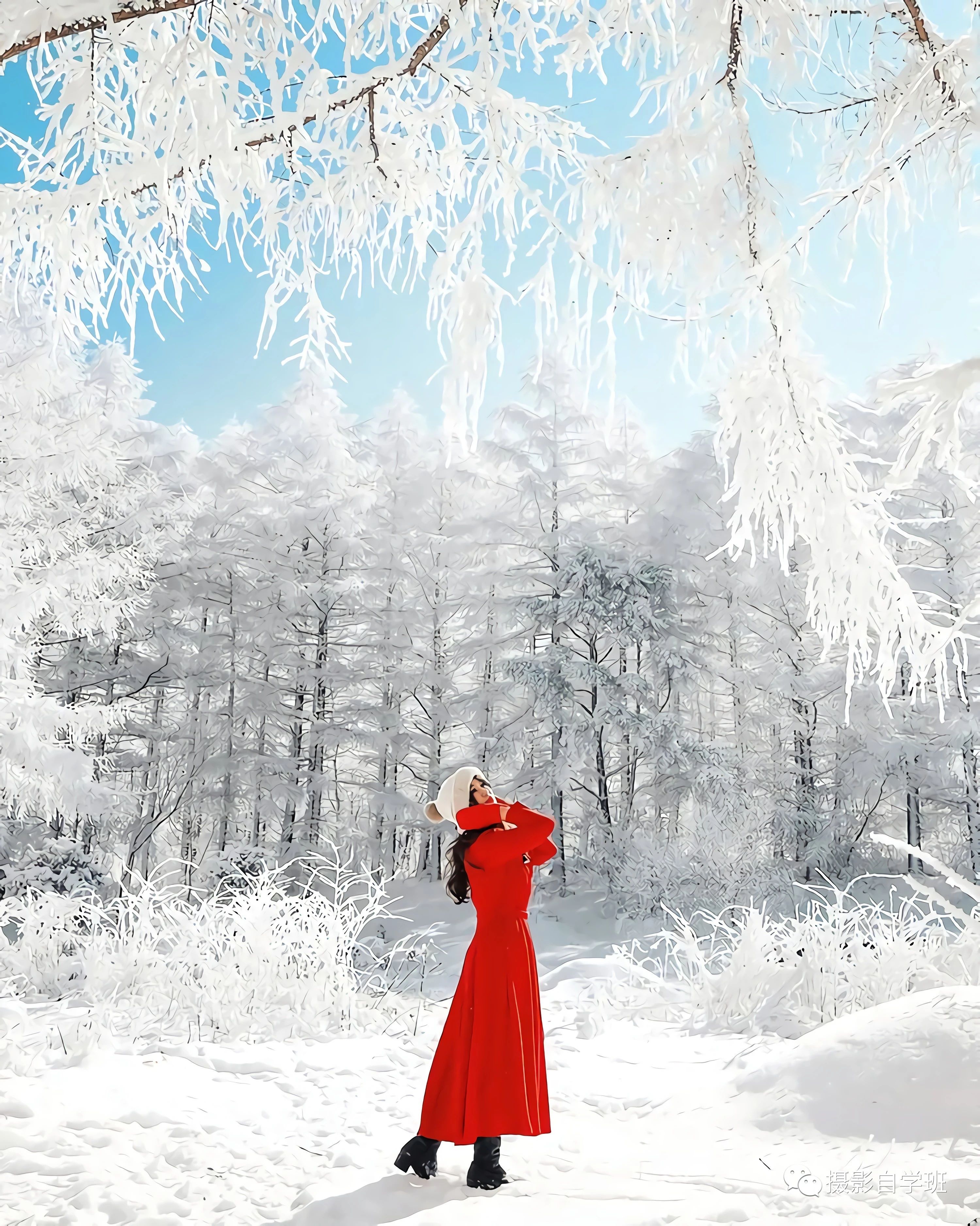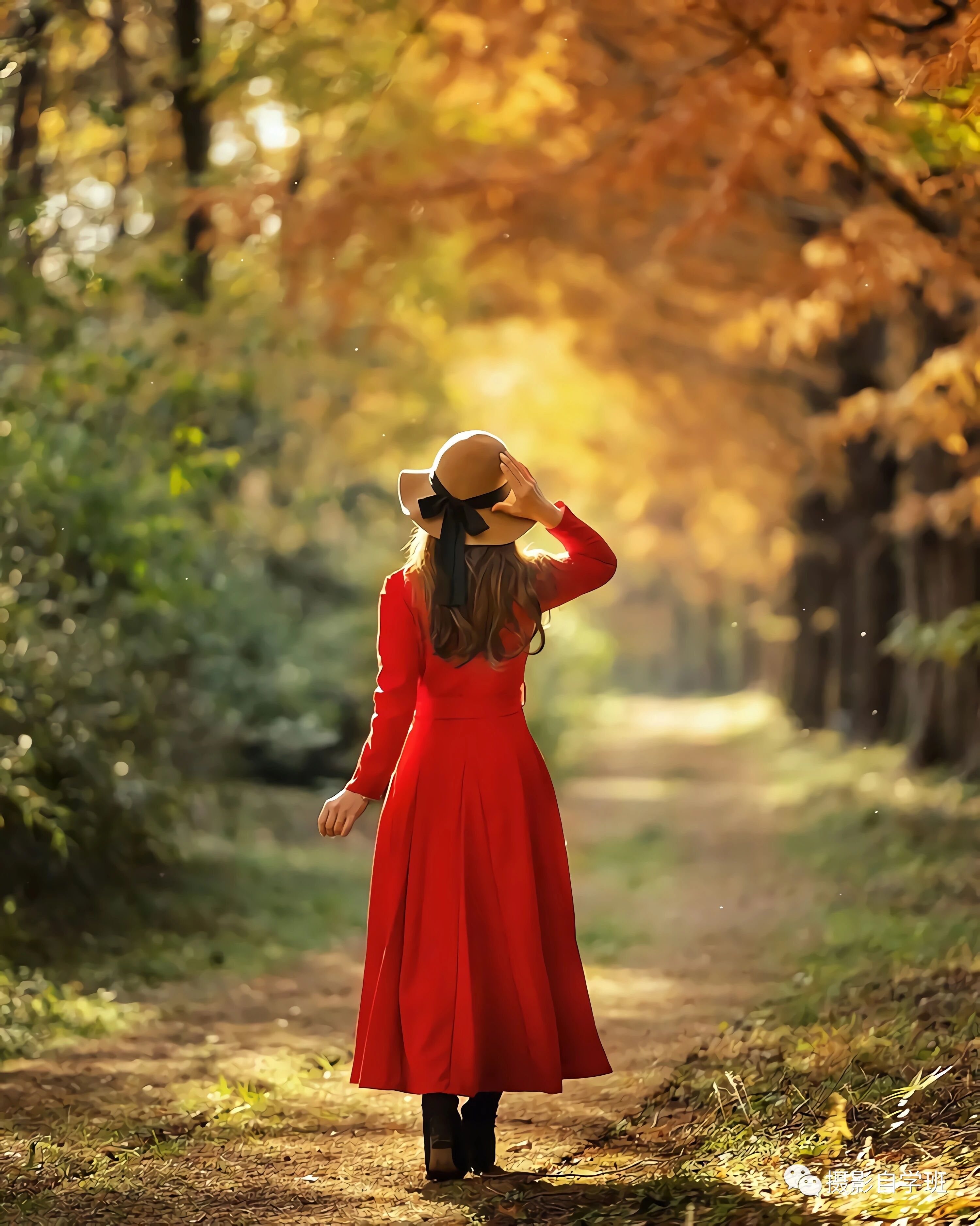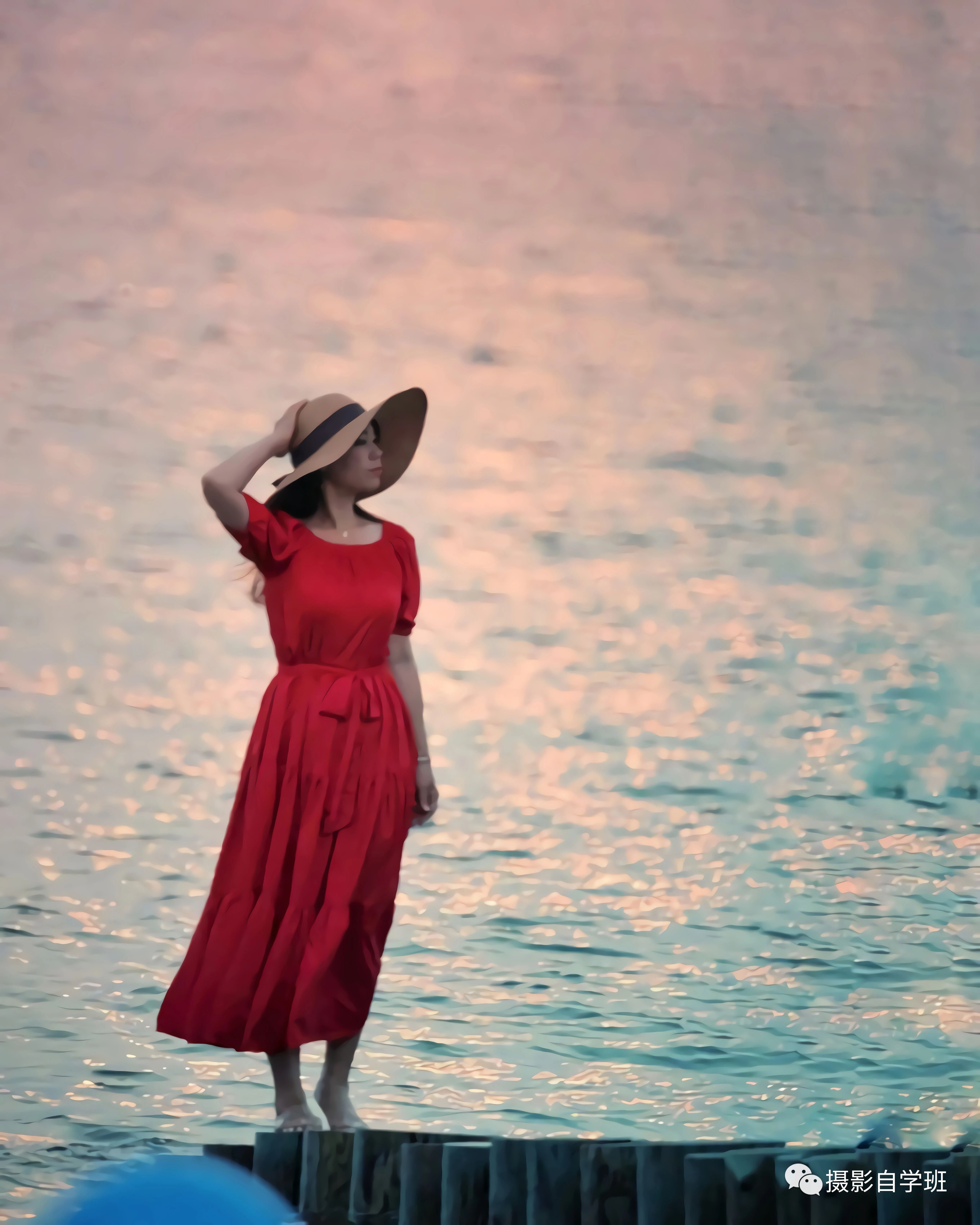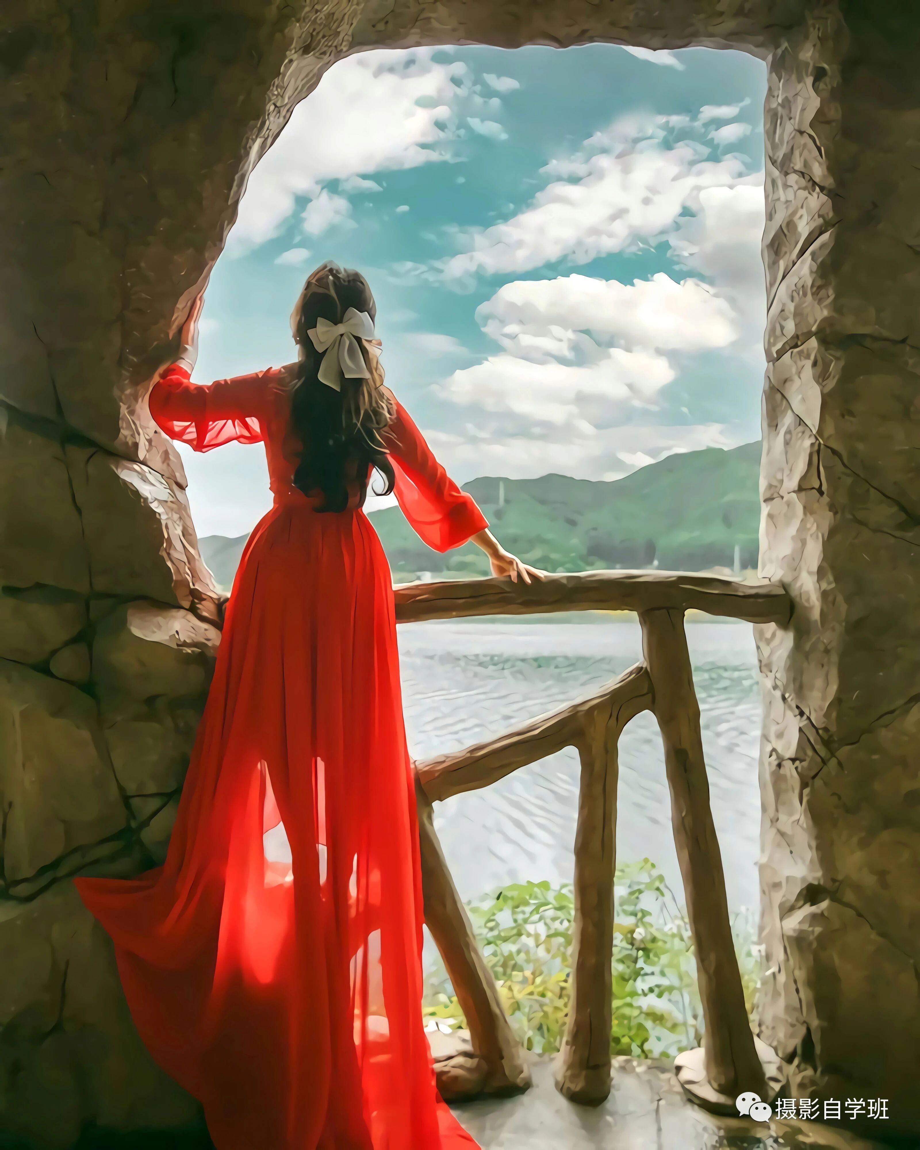 在旅行当中,我们还可以拍一些背影的照片,如果周边的景色,没有太亮眼的地方,那被拍摄的人,一定要穿一些鲜艳的衣服,像上图或者下图这样,红色更显突出,在这个照片当中人物会更被凸显出来。