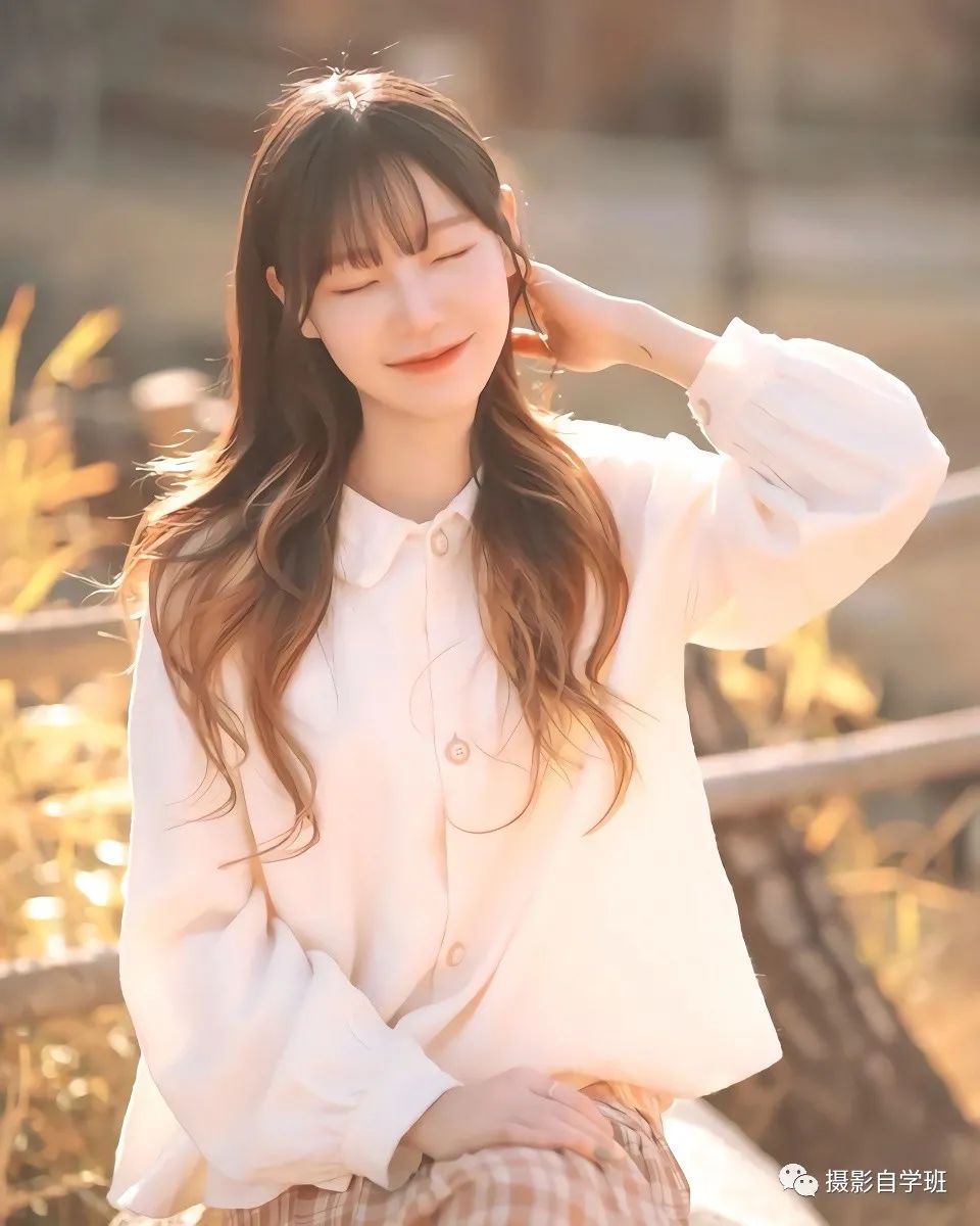在外旅行的时候,可以像上图这样,用一缕头发挡住眼睛,更体现出神秘感,或者像下图这样,直接眯起眼睛,一只手放在头发后面,逆光拍摄,逆过来的光线,可以在头发上形成轮廓光,但逆光拍摄的时候,一定要注意使用反光板,给人的面部进行补光,不要把面部拍得太暗。挡住眼睛或者眯眼睛,这种摆姿技巧,不只可以用在旅行摄影当中,居家摄影同样适用。