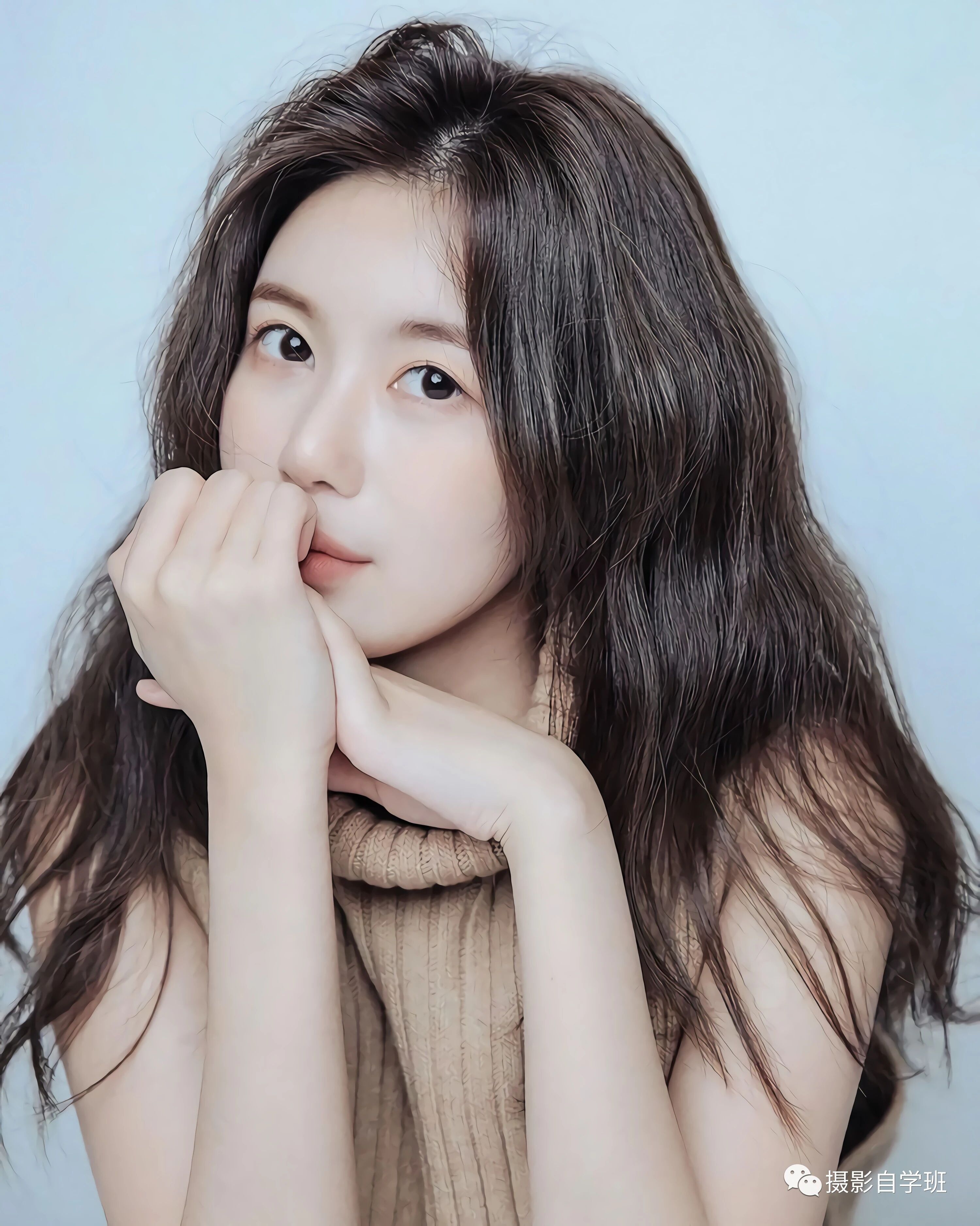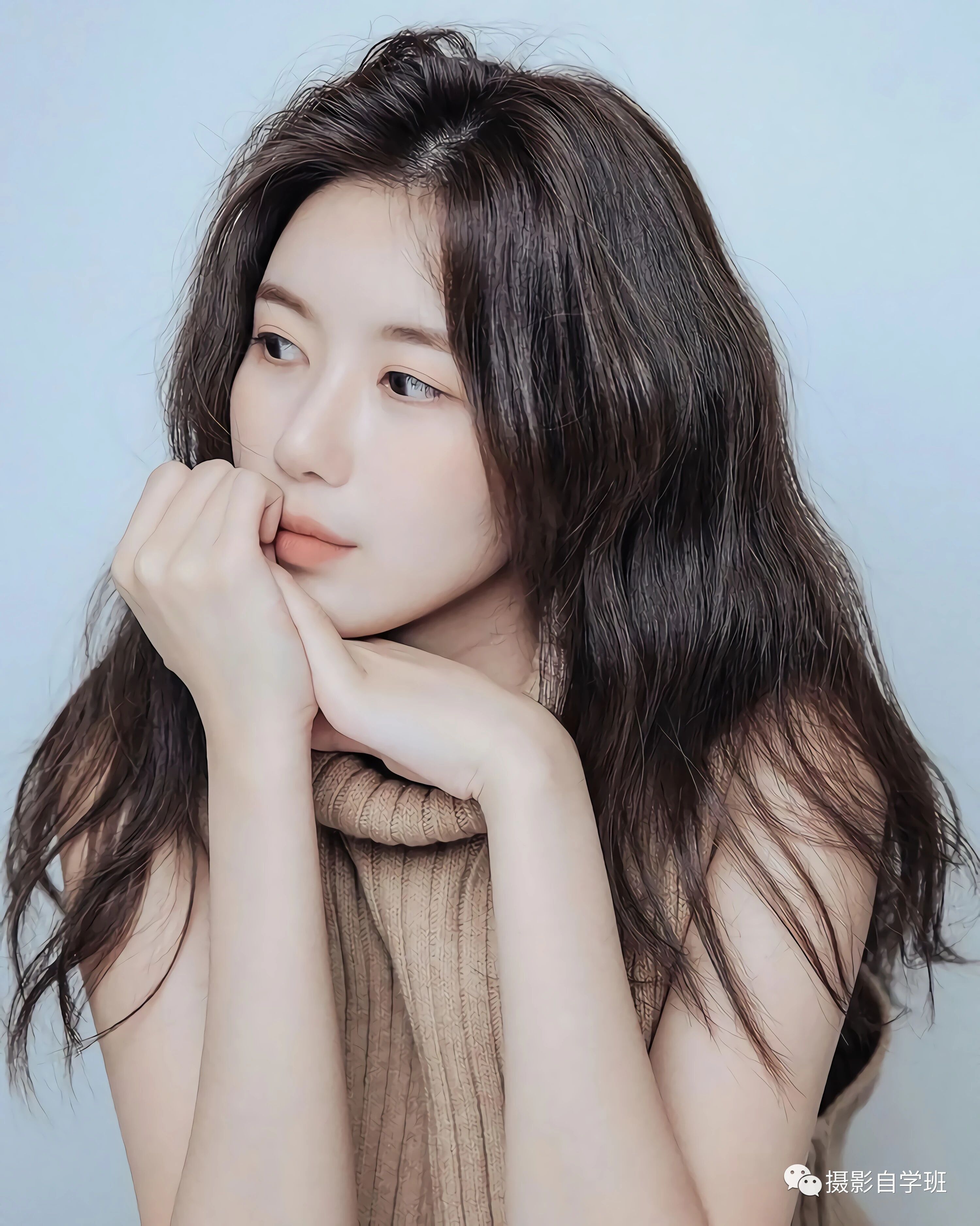 四、居家摆姿两手放在下巴下面。