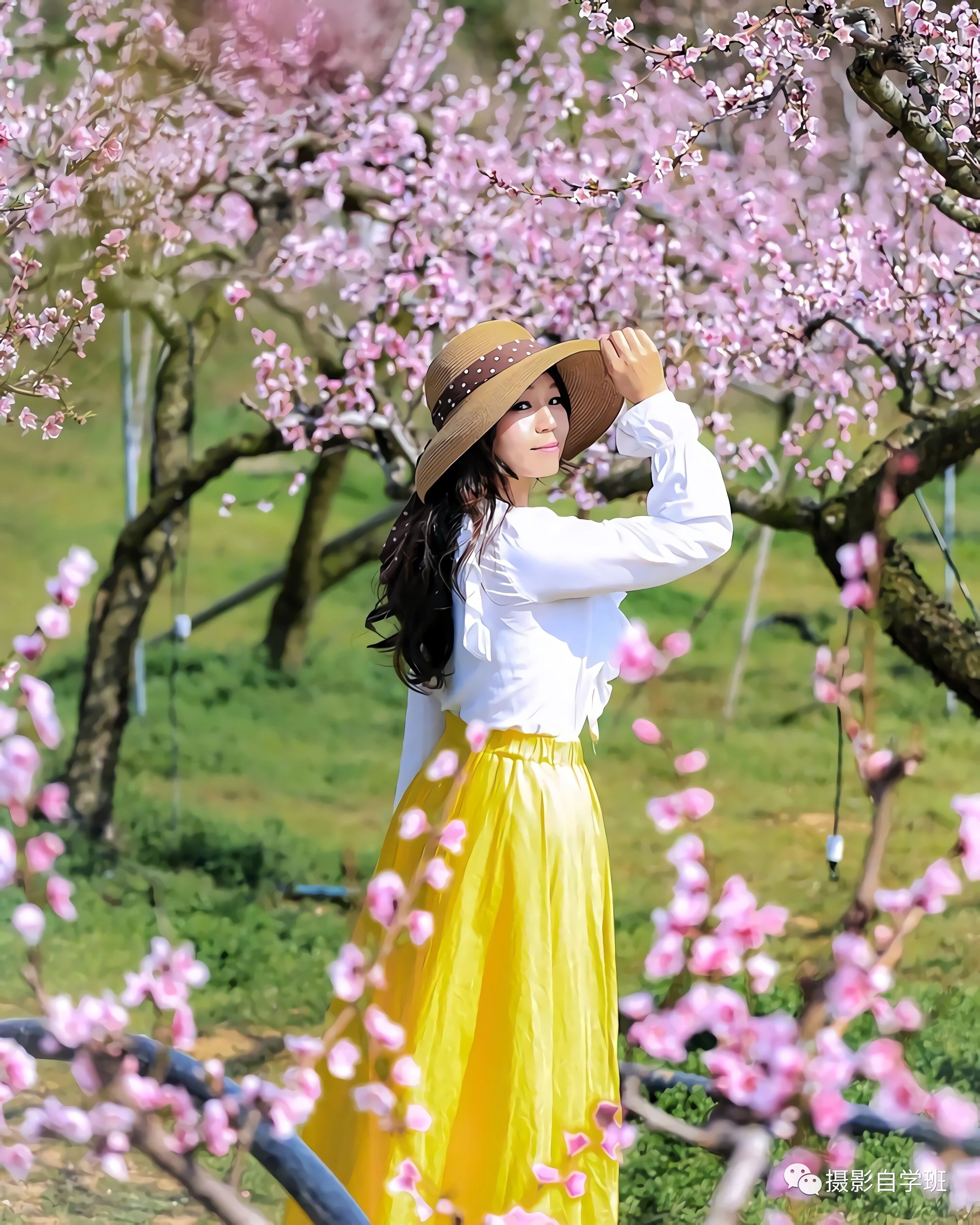 二、旅行摆姿手扶帽子。