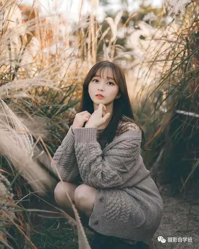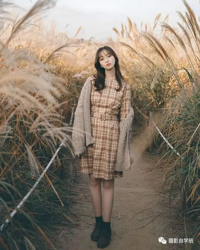 在人像摄影当中,姿势也非常重要,像上面这张照片,蹲着的姿势,看起来就不是那么雅观。而下面这张照片,站起来就很好。并且两边的草也都比较高,同时呼应了人物站着的姿势。人像摄影当中,尤其是拍女孩,尽量不要使用蹲着的姿势,这一点你要注意。姿势上的小改变,就能让你的人像照片更好看。