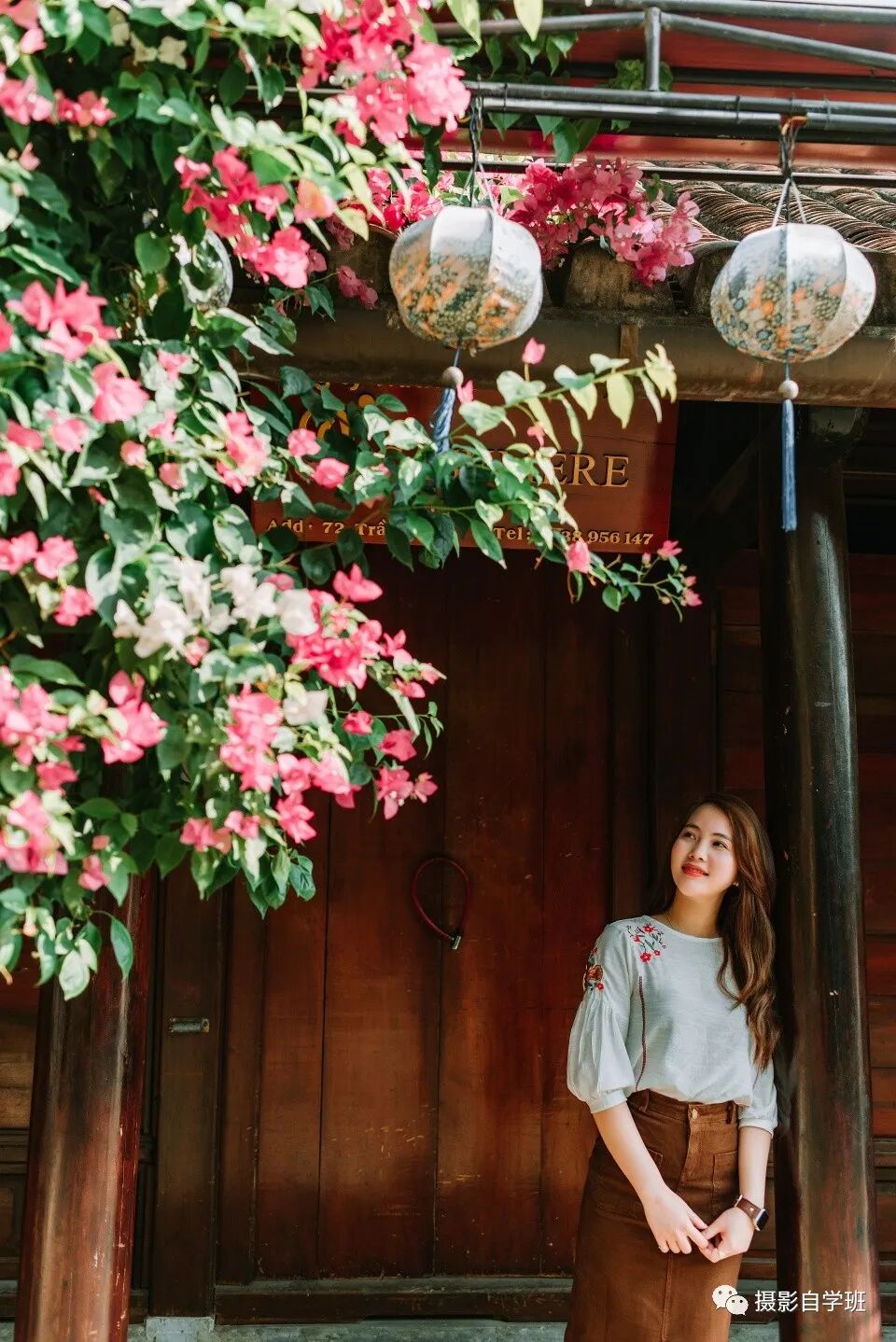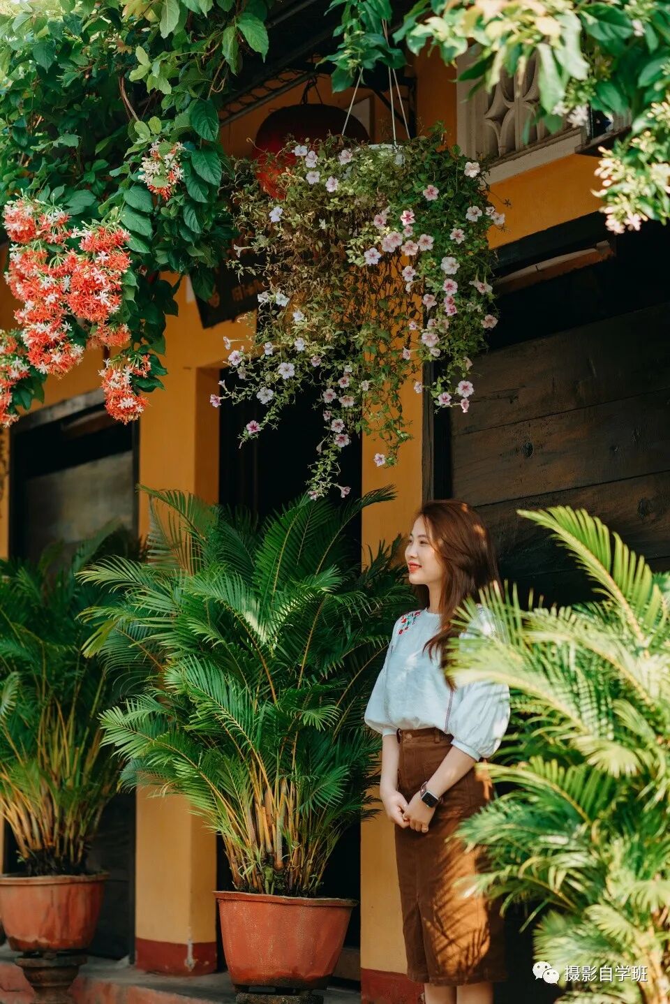 拍摄人像照片时,我们要知道什么才是你照片的重点。当然是人。上面这张照片植物明显过多,人又看向远方,隐藏在植物当中不被凸显,显得很次要,植物喧宾夺主。摄影时可以做些取舍,让植物位于左上角,人位于右下角,这样植物被利用上,人也被凸显出来,可以引导他靠在柱子上,眼神望向植物,姿势就有了照片也很漂亮。