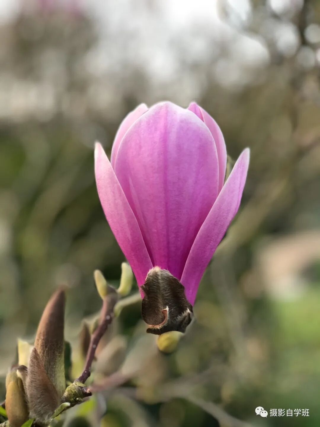 如果是在一些公园当中,拍摄玉兰花照片时,下面这个技巧,会让你的照片,提升到一个很高的档次。