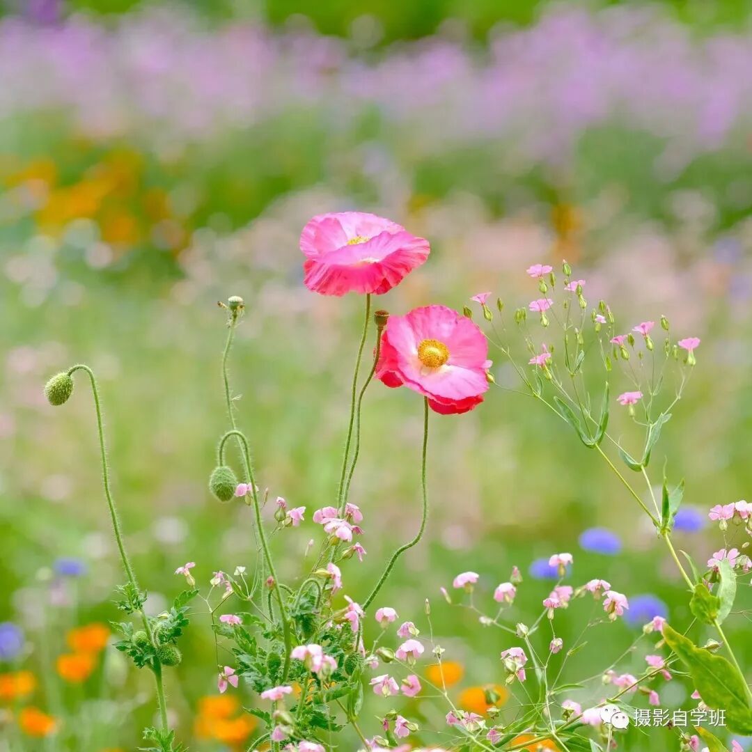 不贪多,才能拍出好看的路边花朵照片,无论是用手机拍摄,还是用相机拍摄,在拍花时,都可以以其中一朵,或者聚集在一起的两朵、三朵作为主体。像图4这样,前景有主要两朵花,一朵在下方,趋于中间的可以被视为主体,背景当中的花,都距离它们很远,被拍得很虚化,图5中间的两朵花,聚集在一起,稍远一点有一朵花背对着镜头,能起到很好的陪衬作用,其他的花离得比较远,被拍成了虚化,照片主次清晰,主体花朵明朗,就会更加耐看。