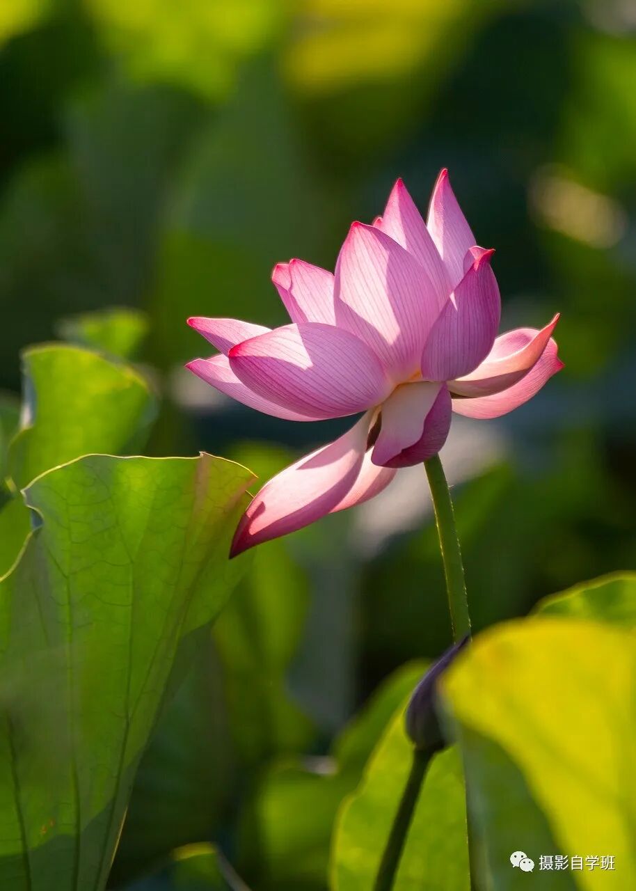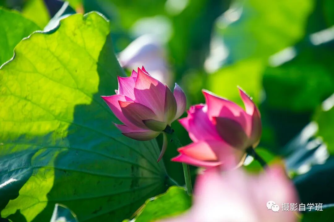 主体选对了,陪体也不能捣乱,像图3这张照片,如果单独拍右侧这朵荷花,没有什么毛病,但是带上左侧两个荷花,照片就显得有些乱,主要是左侧的这个盛开的荷花被半开的荷花遮挡,而我们要让一张荷花照片当中,主次突出,对比明显,像图4这张照片,一朵荷花傲然独立,右下角有两朵粉色的,但完全隐藏的,没有陪体捣乱,照片看起来才不乱。