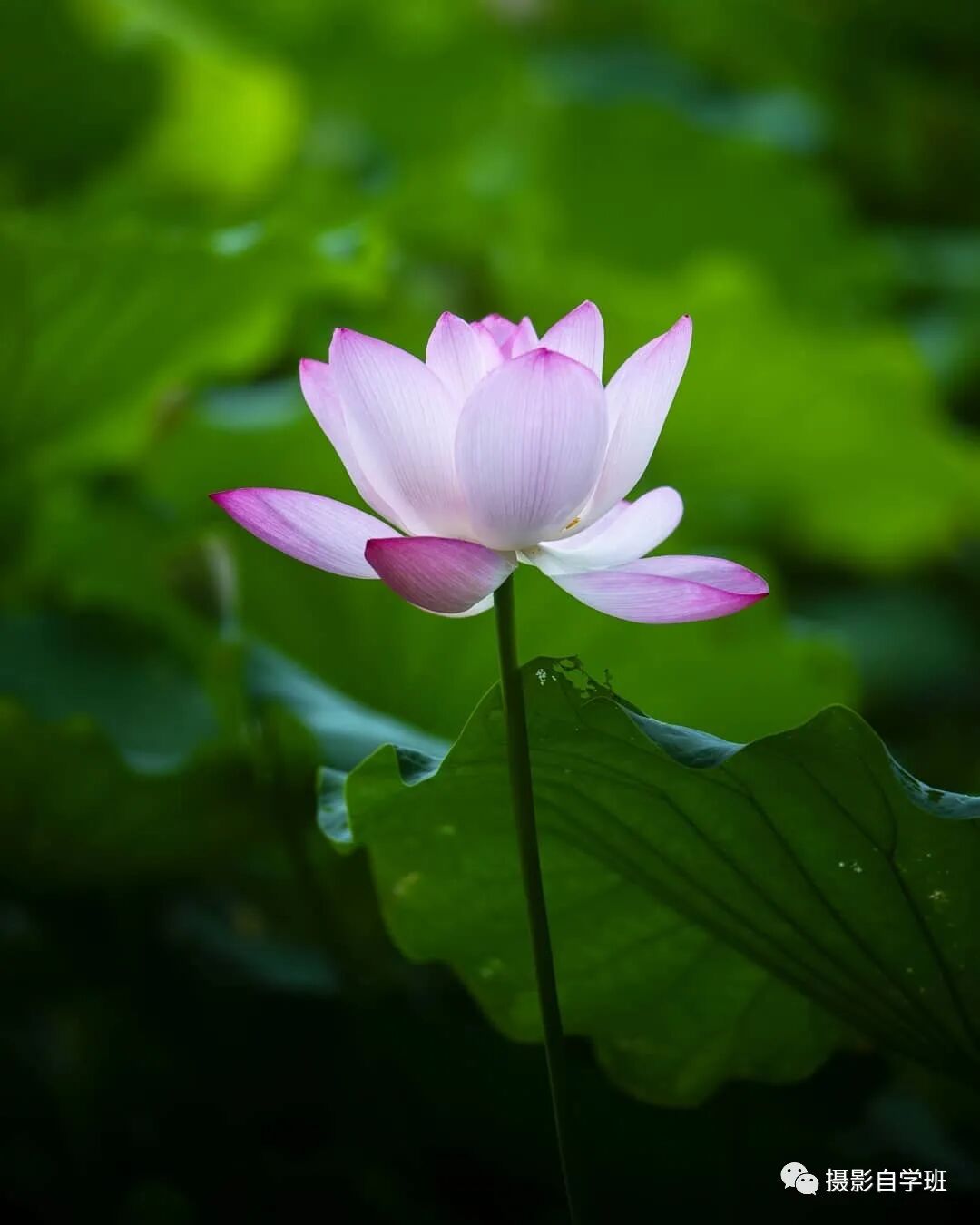 最后,如果你想要拍摄出更加简洁、干净的荷花照片,那么你可以选择一枝独立的荷花作为主体,像图12这样。此时,你可以通过适当的取景和构图,缩小取景范围,不要让画面中有太多杂色,让画面更加简洁明了的同时,也可以让荷花的美丽更加突出。