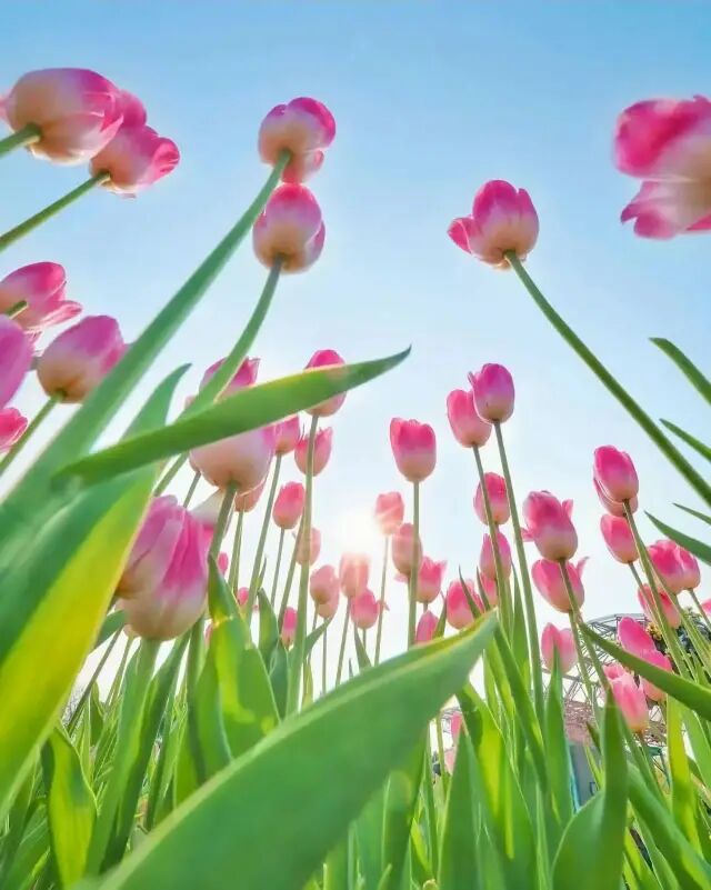 而图8这里,背景有一些细节了,但前景的花,又不是那么好看,还是有些遗憾,图9这里前景花朵漂亮,背景没有过曝,甚至左侧还有一些光斑,画面简约好看,所以你在拍摄郁金香花朵照片的时候,不要在阳光太强的时间段拍摄,这样就可以避免天空过曝了。