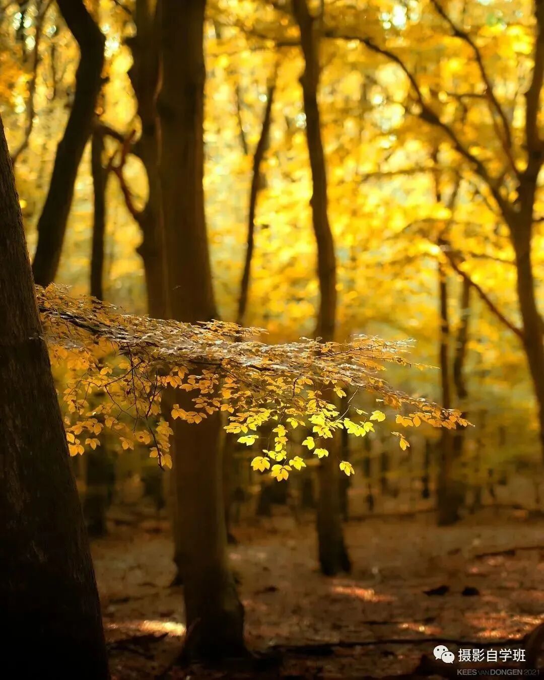 拍摄树林中的一些叶片,小风景照片,要像图10这样逆光拍摄,因为逆光的情况下,叶片更有质感,但图10的取景范围有些大,如果把取景范围,控制在几个叶片上,照片看起来,会更加干净、漂亮。