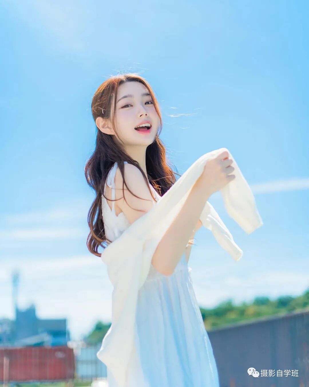 还可以让被拍摄的人,把一些外套,像图12这样,搭在身上,摄影师从下往上拍,机位要适当低一点,拿相机的人,要蹲下一点,目的除了让被拍摄的人,显得苗条以外,还能够排除现场的杂物。引导被拍摄的人,手中拽着衣服,可以自然地回头,或者转动起来,就能够拍出非常漂亮的姿势。