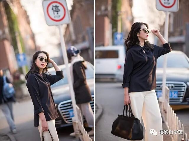 因为拍摄场景在户外,我们又想展示,自然大方的拍摄姿势,如果所有的姿势都是摆拍就会显得刻意。那我们和场景有一个真实自然的互动,自信大方也不失温柔可爱。所以要善于发现及利用户外的拍摄场景。