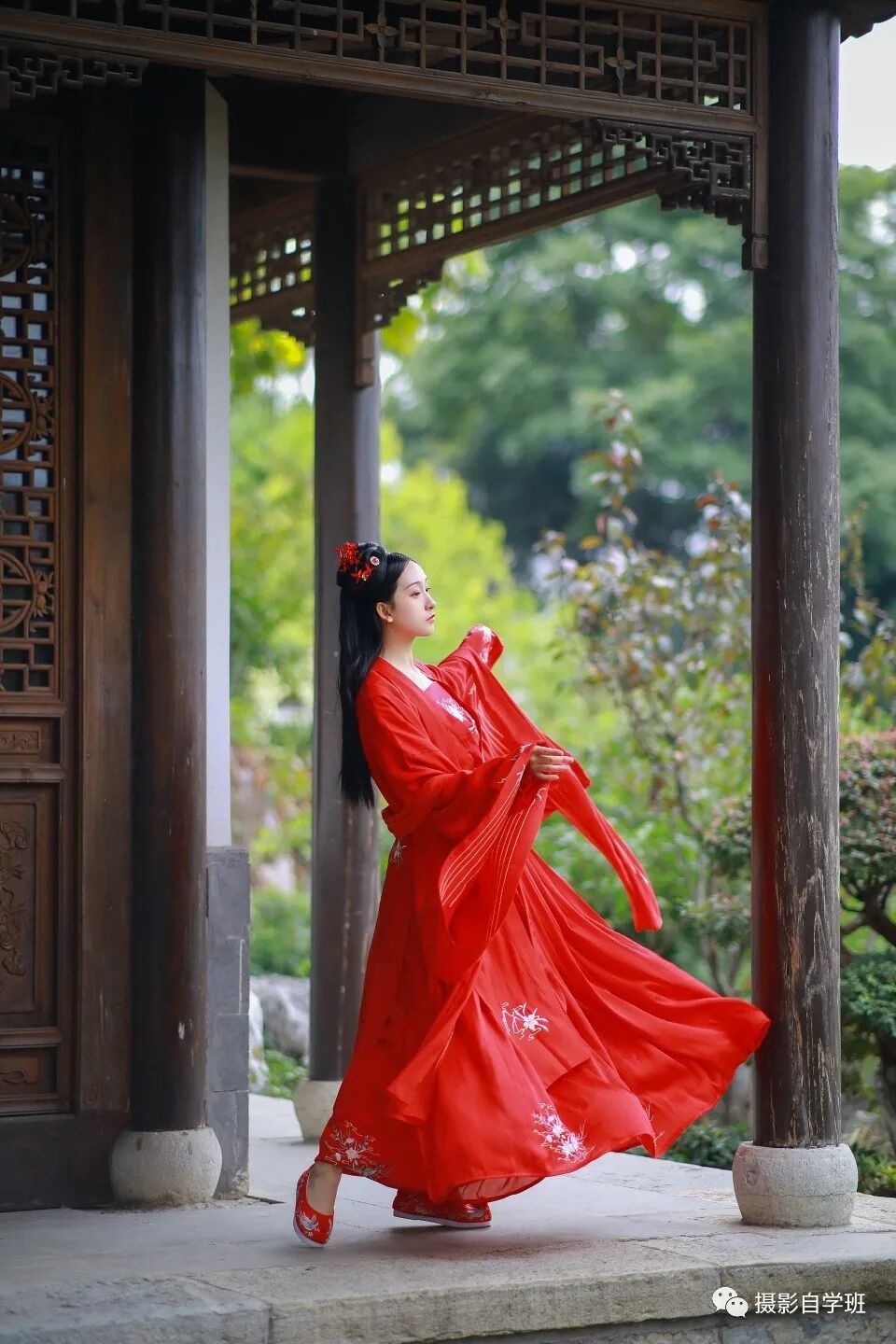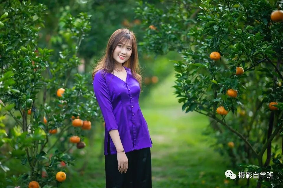 拍摄人像照片,要注意,不是拍景色,不要像上图这样,拍摄范围过大。拍摄范围一大,照片内的元素就多,比如上图,要地面、有栏杆、有房顶、背景有不同颜色的树,还有过曝的天空,范围大了,就不好控制。而像下图这样,相对来说,缩小取景范围,背景离人远,有景深,人像照片相对来说,就更干净了。