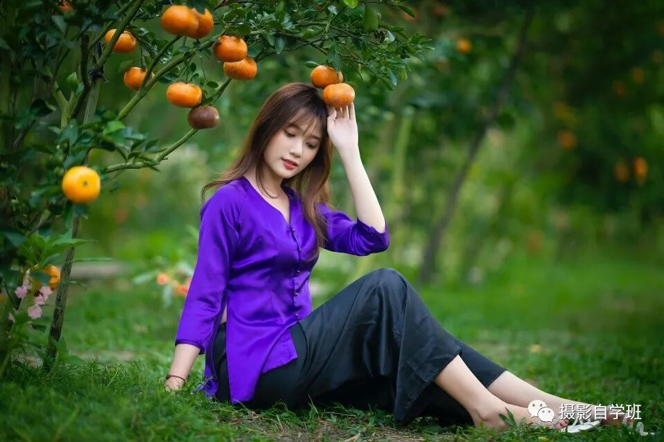 如果地上有一些小物体,也可以用动作或者眼神,与地上的物体形成呼应,做一些互动,照片就更显得自然得体。