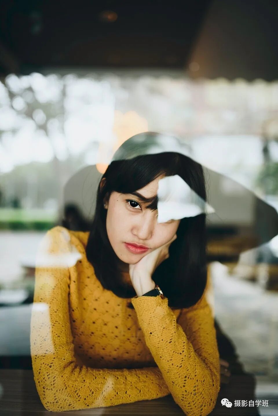 或者像下图这样,利用绿色植物作为前景,遮挡住部分镜头,对焦在人物的眼睛上,就可以拍出前景虚化了。